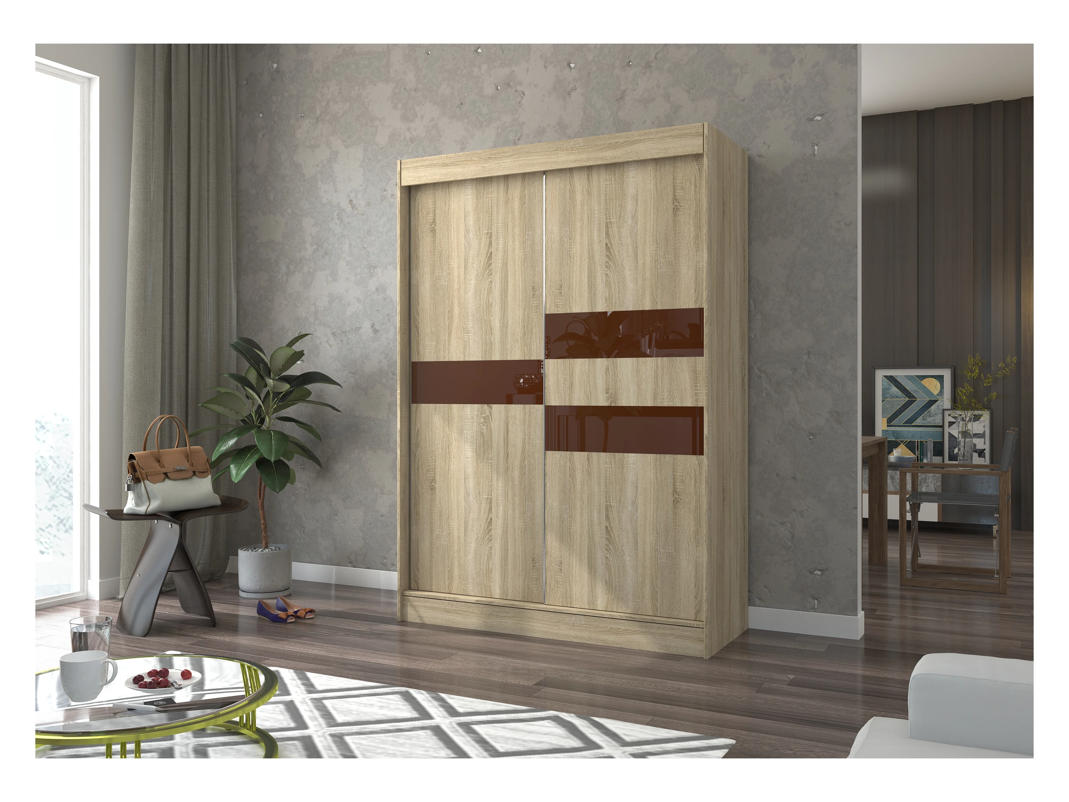 Kleine Sonoma lichthouten slaapkamerkast met 2 schuifdeuren Keria 120 cm