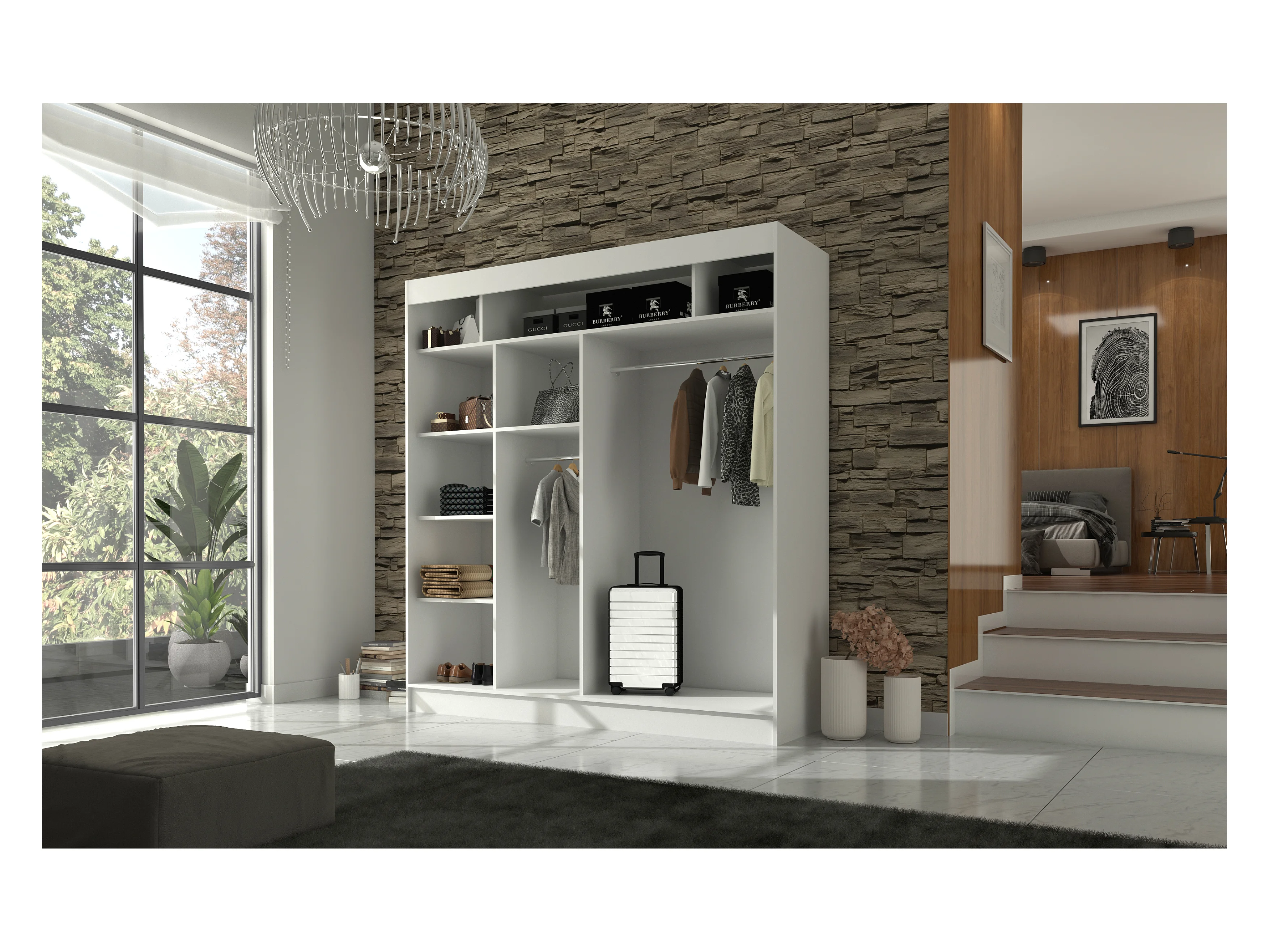 Witte kledingkast voor volwassenen en ambachtelijk hout 2 schuifdeuren Kamia 200 cm