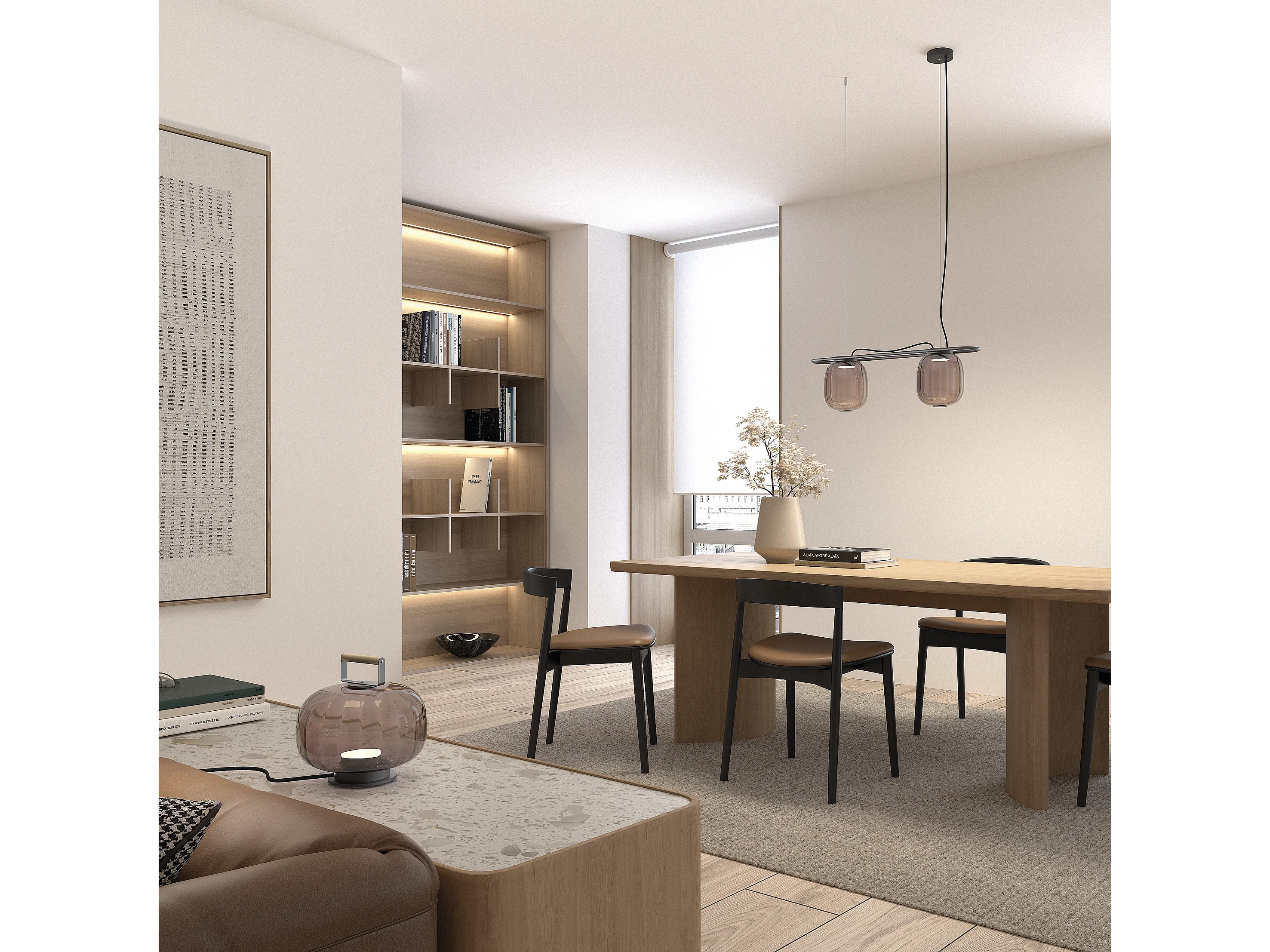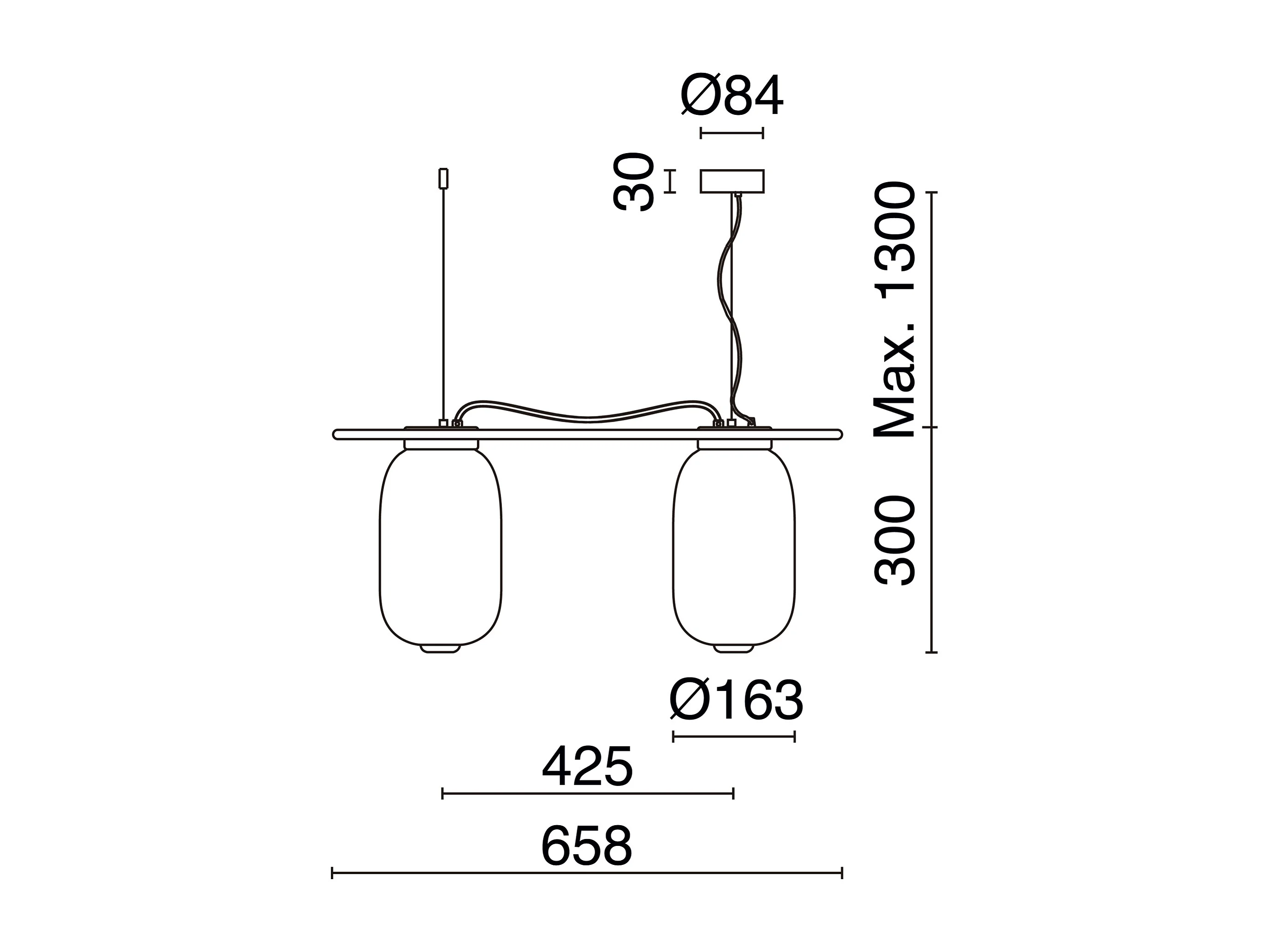 KRISTA klassieke stijl plafondlamp - 2x LED SMD AC 10W - 1660lm en 2700K - glazen kap ø16,3 cm x H 130 cm - Staal en blauw - IP20