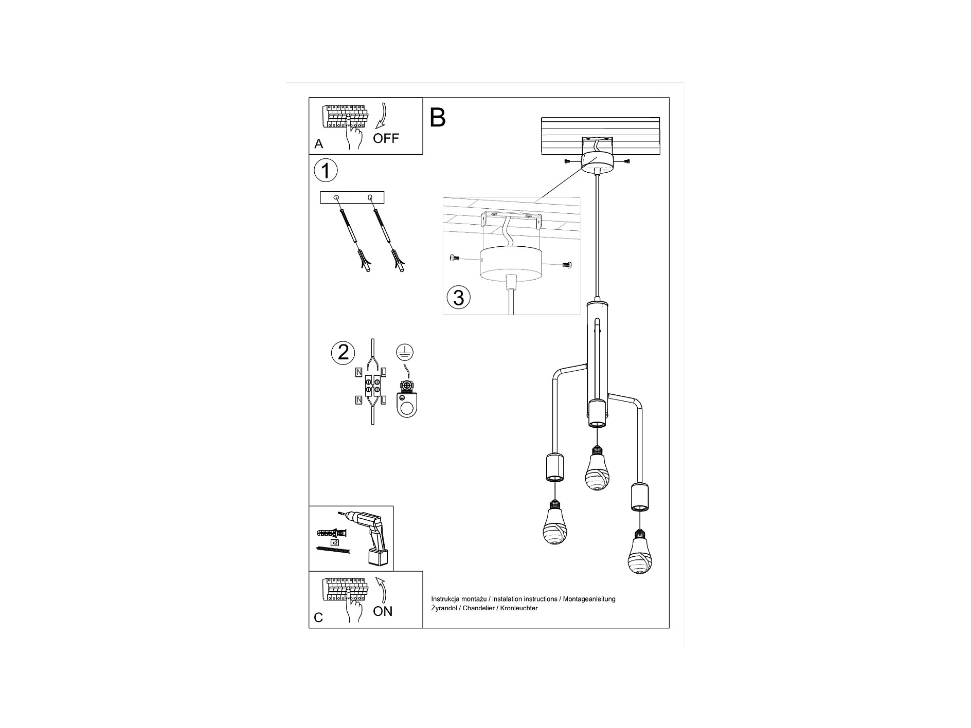 Kroonluchters Luxra zolder van - 3 lichtbronnen 4000K - L.25 x H.100 cm - zwart