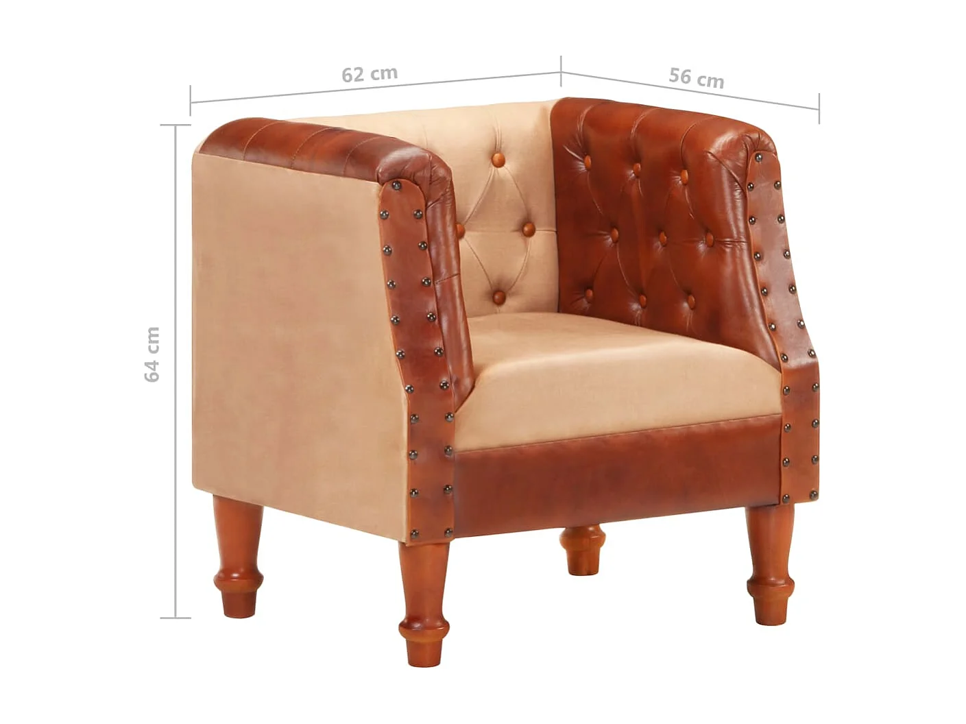 Kuipstoel echt leer en massief mangohout bruin