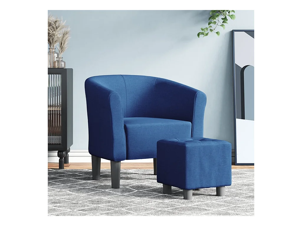 Kuipstoel met voetenbank stof blauw