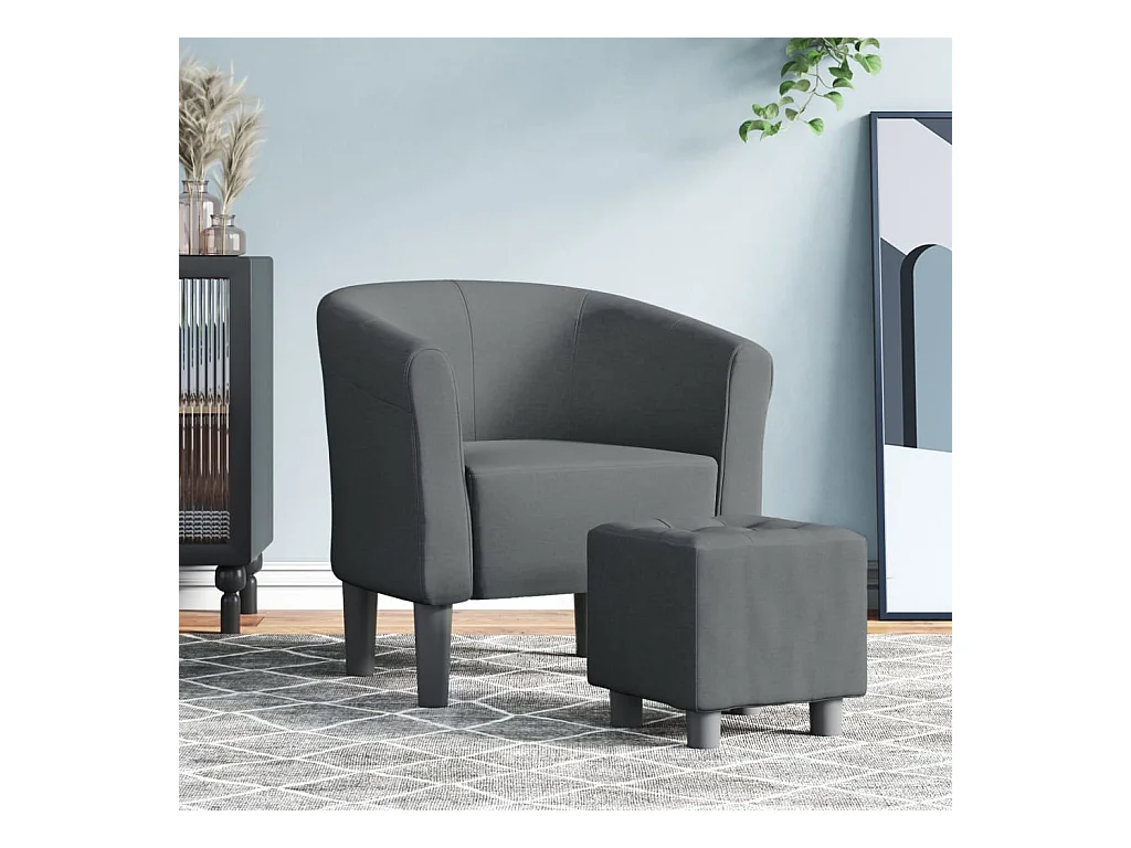 Kuipstoel met voetenbank stof donkergrijs NL197490