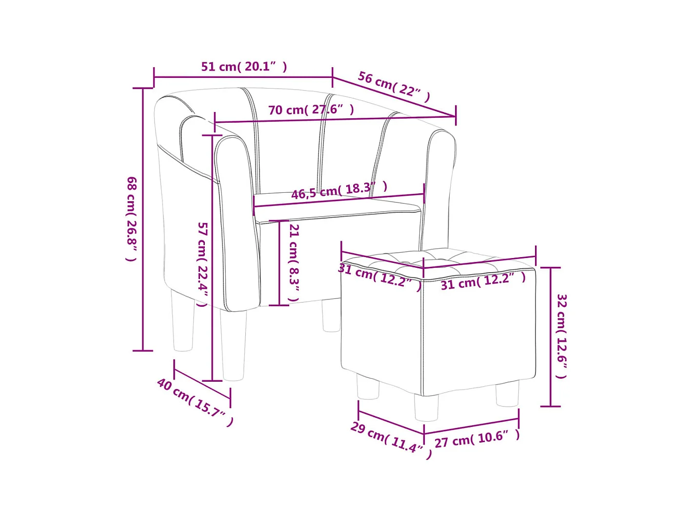 Fauteuil met voetenbank 60 cm stof donkergrijs