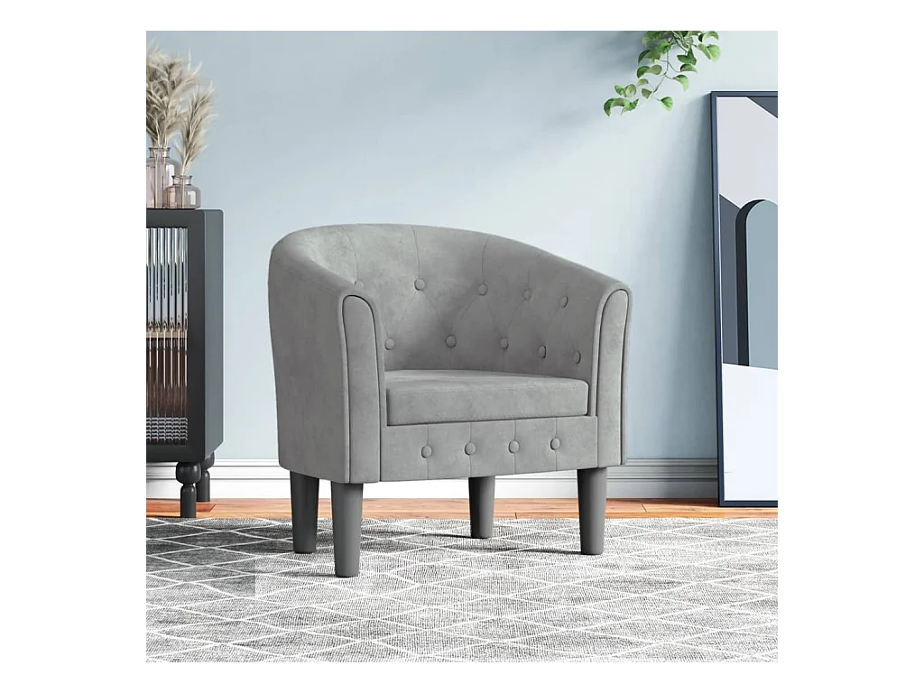 Kuipstoel met voetenbankje fluweel lichtgrijs