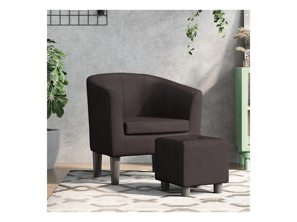 Fauteuil met voetenbankje kunstleer donkerbruin