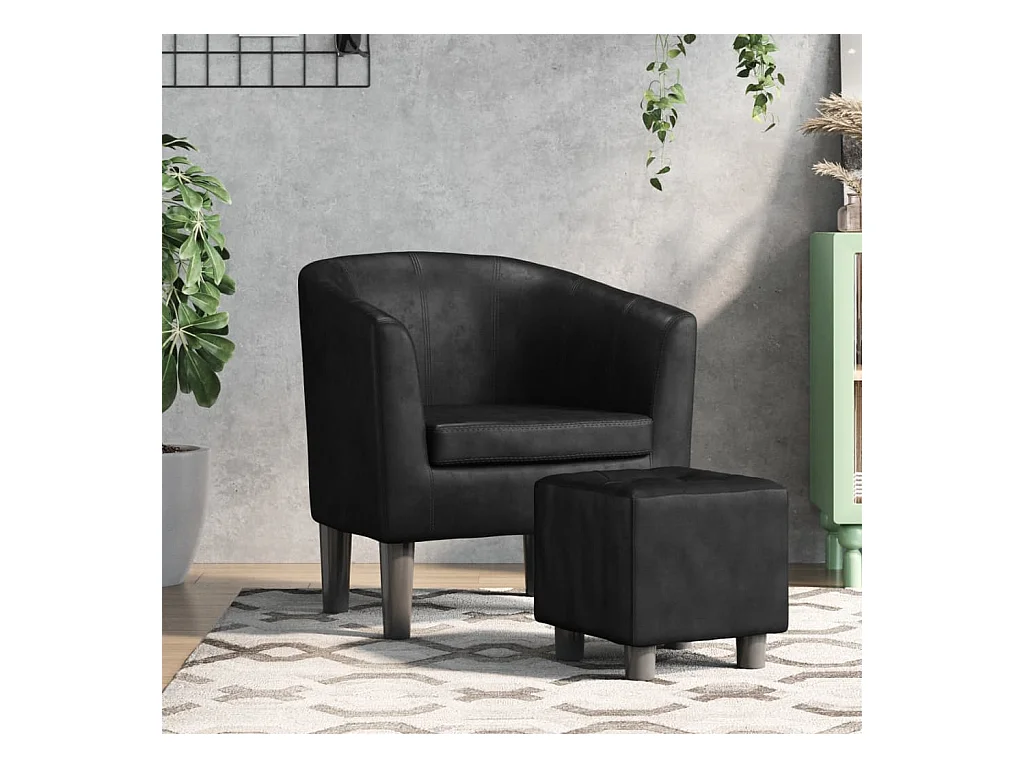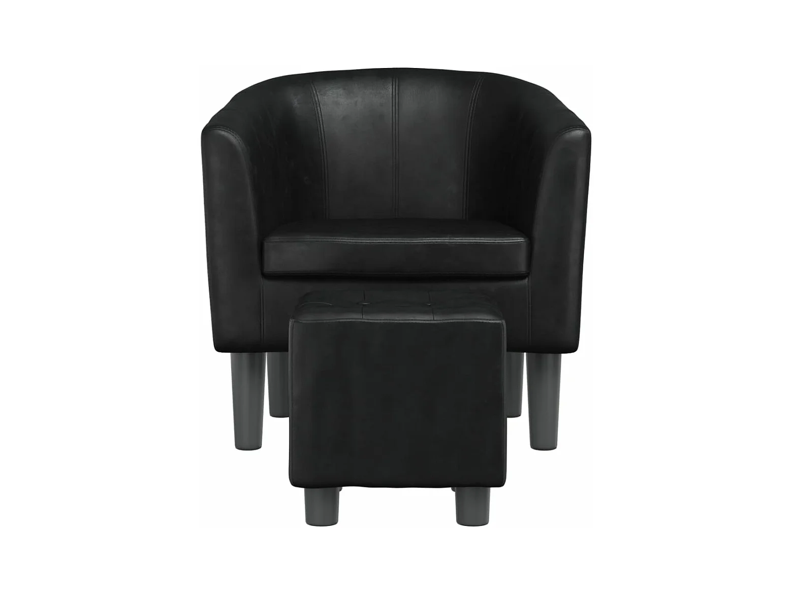 Fauteuil met voetenbank 60 cm kunstleer zwart