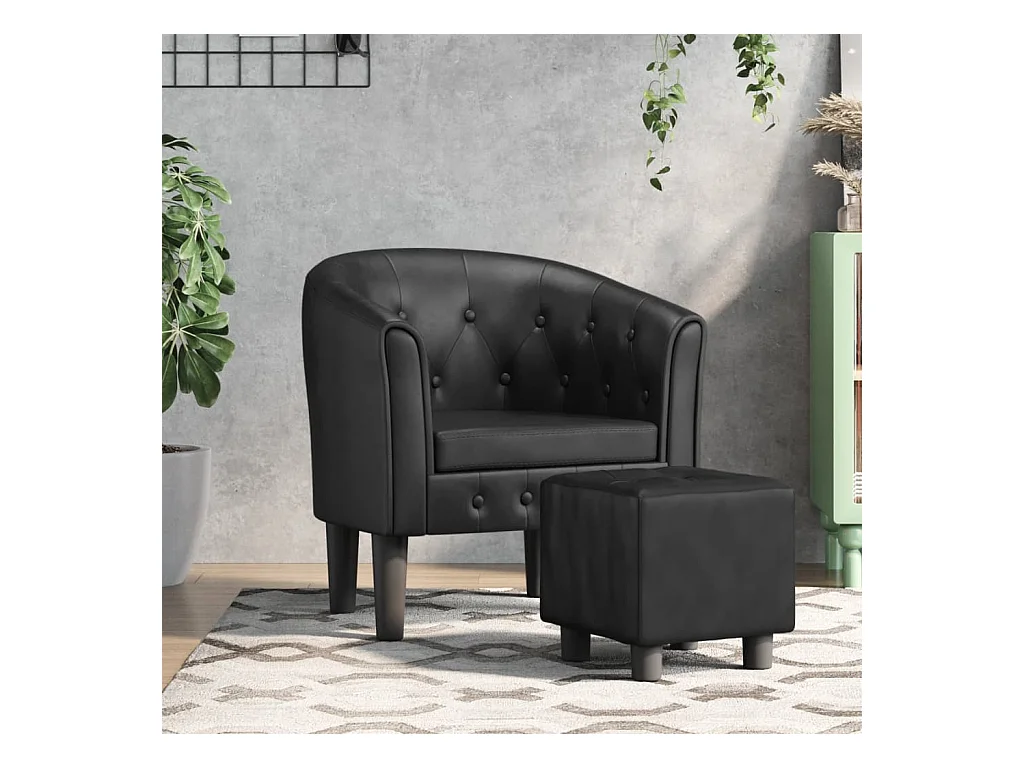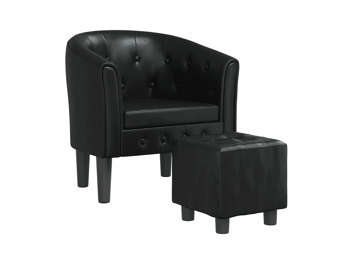 Fauteuil met voetenbank 60 cm kunstleer zwart
