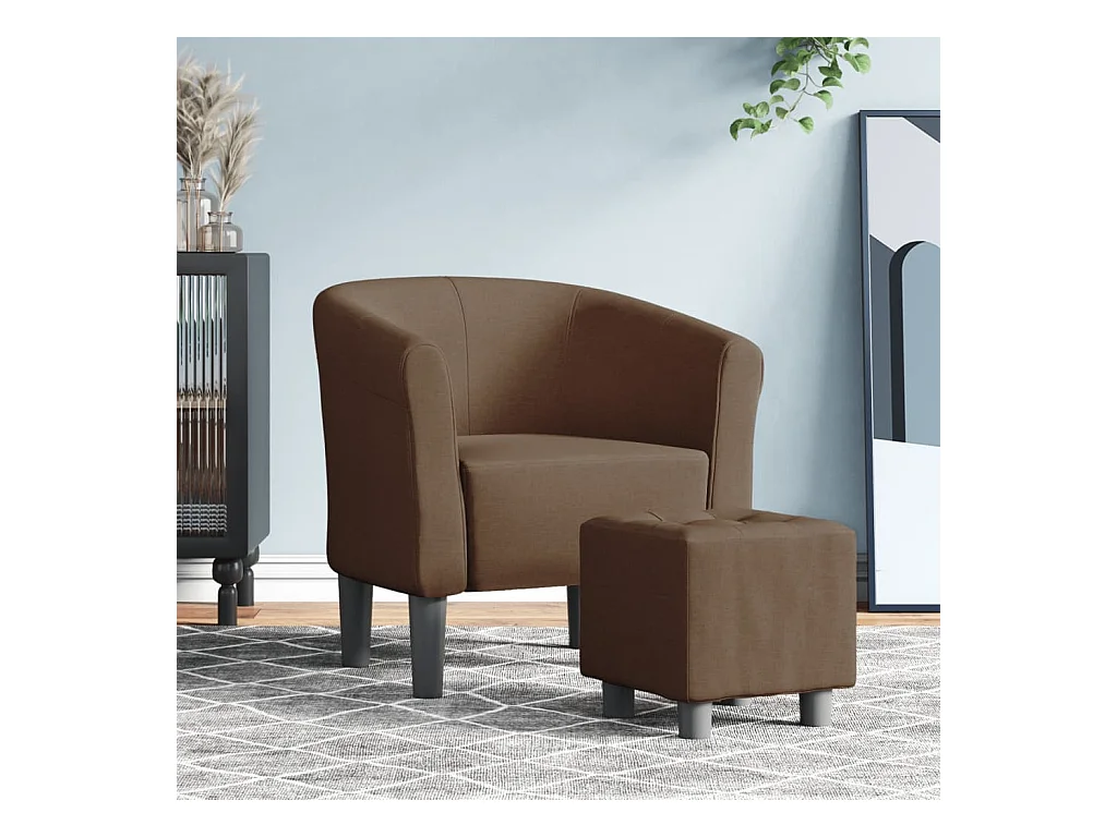 Kuipstoel met voetenbankje kunstleer bruin NL428695