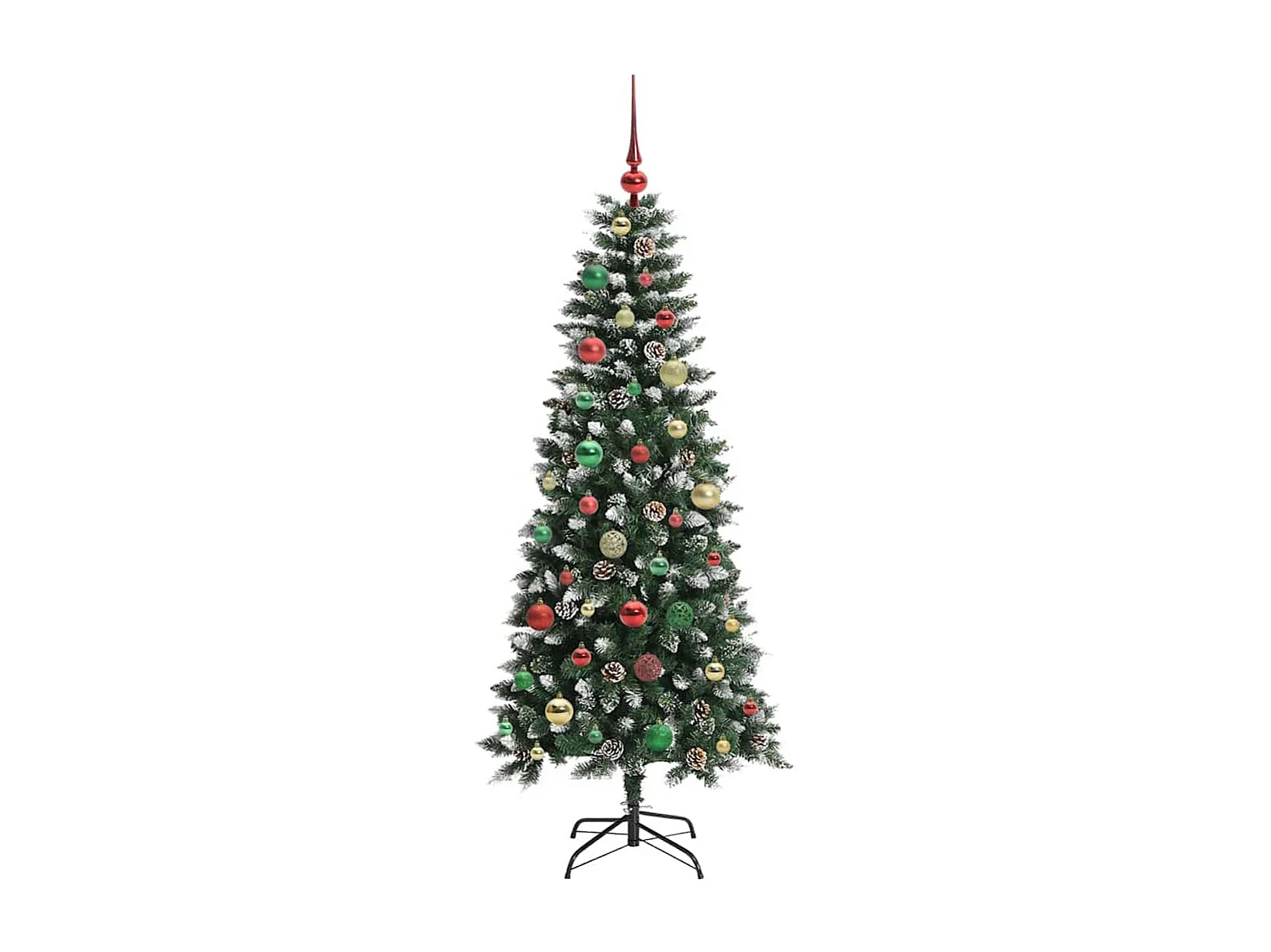 Slanke Kerstboom Groen en Wit 150 cm PVC en massief dennenhout