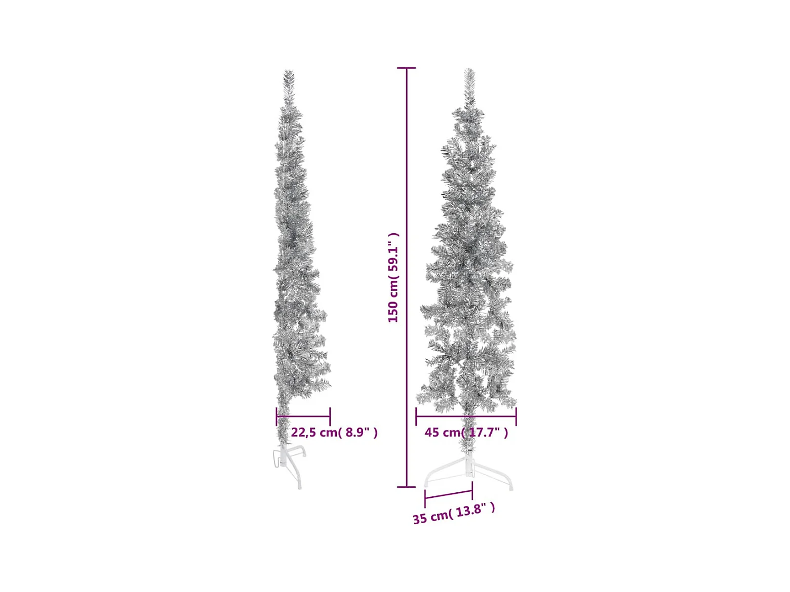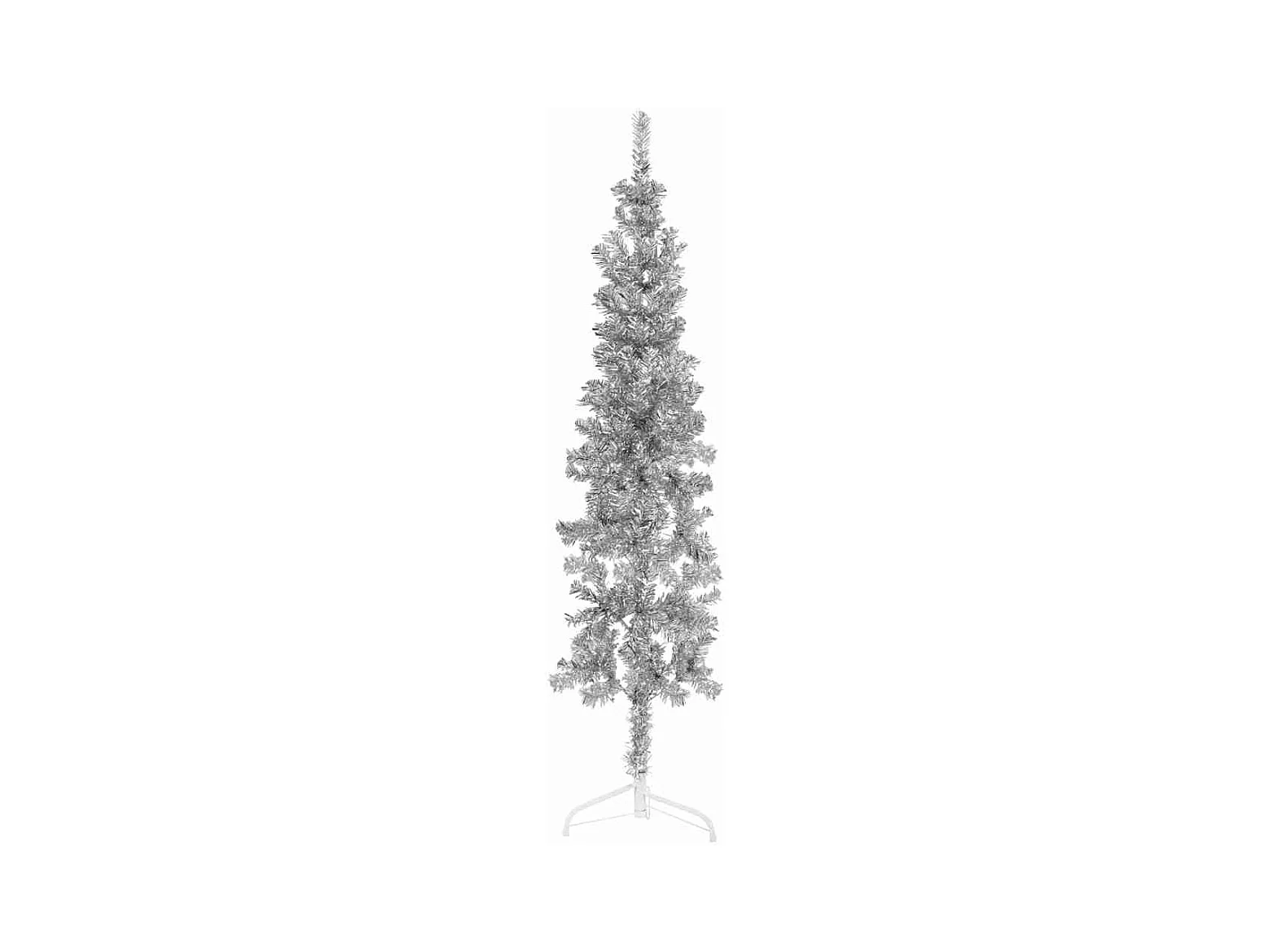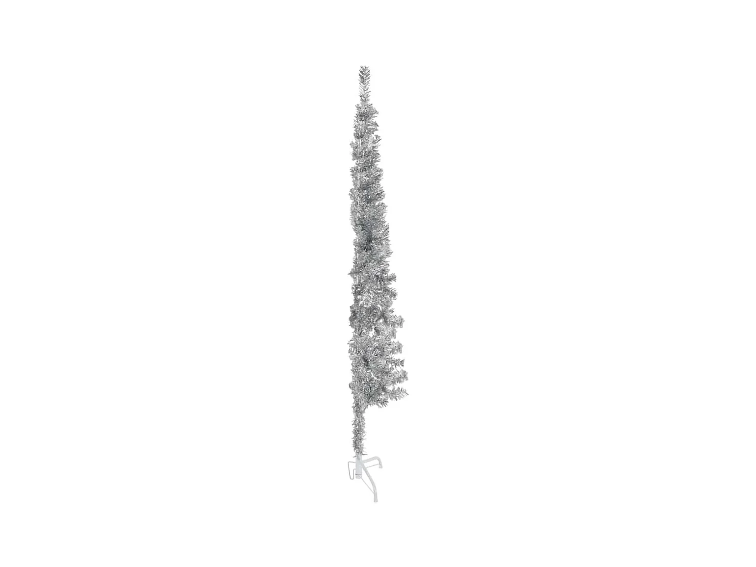 Kunstkerstboom half met standaard smal 150 cm zilverkleurig