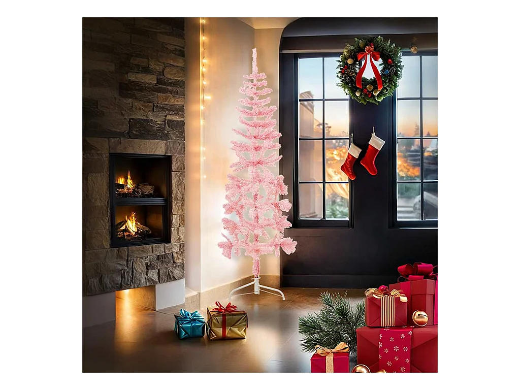 Kunstkerstboom met standaard half 180 cm PVC roze