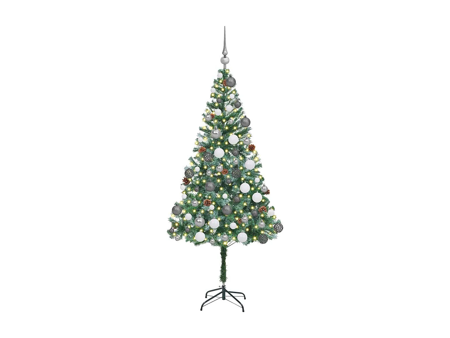 Voorverlichte kunstkerstboom met groene ballen 180 cm PVC