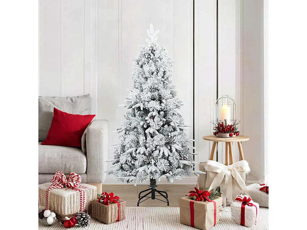 Kunstkerstboom met buigzame takken, pluizig van sneeuw