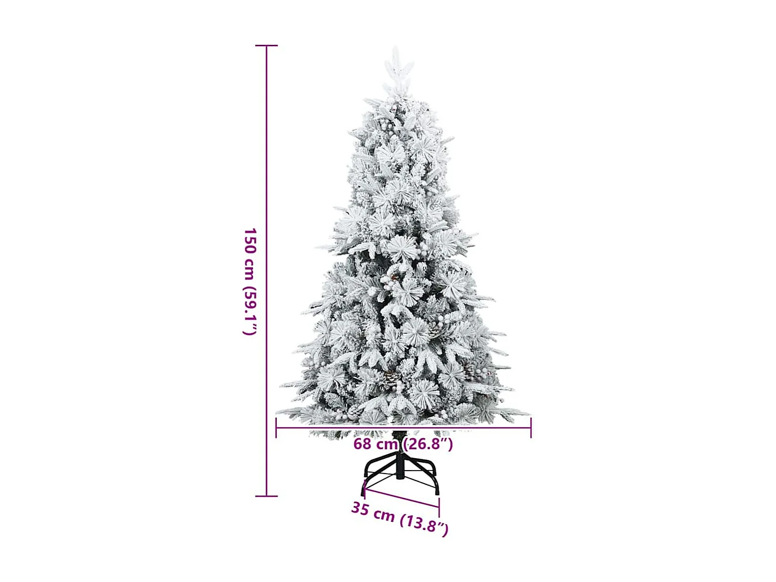 Kunstkerstboom met scharnieren en sneeuwvlokken 150 cm