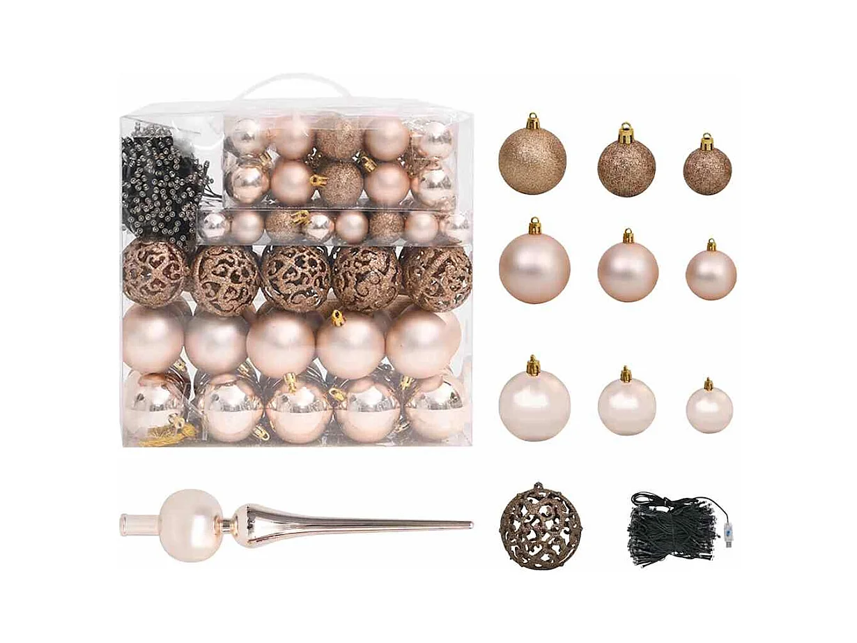 Kunstkerstboom met verlichting en kerstballen 210 cm PET zilver