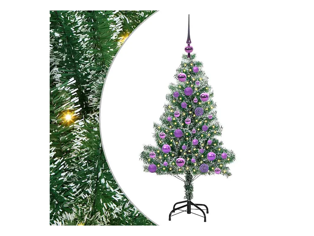 Kunstkerstboom Sneeuw Gevlokt met LED Licht Groen en Wit 120 cm