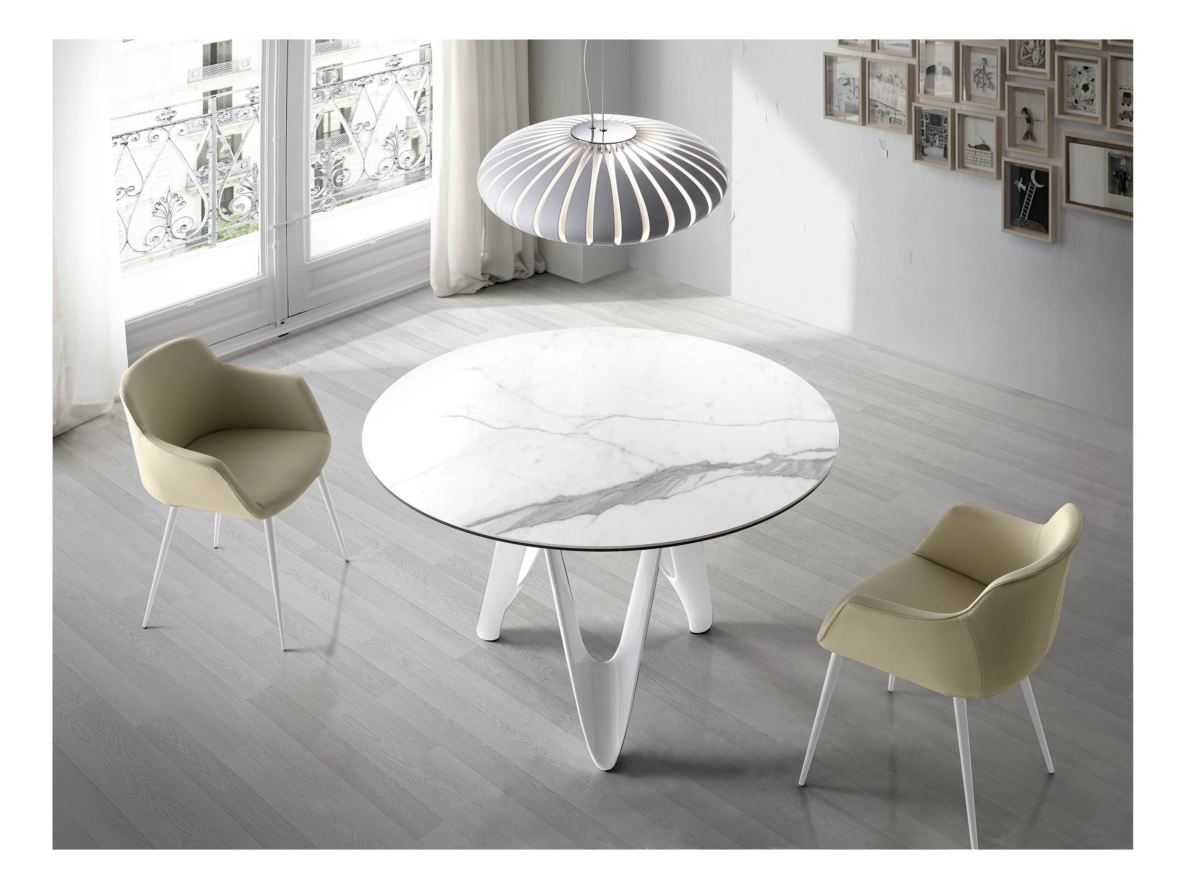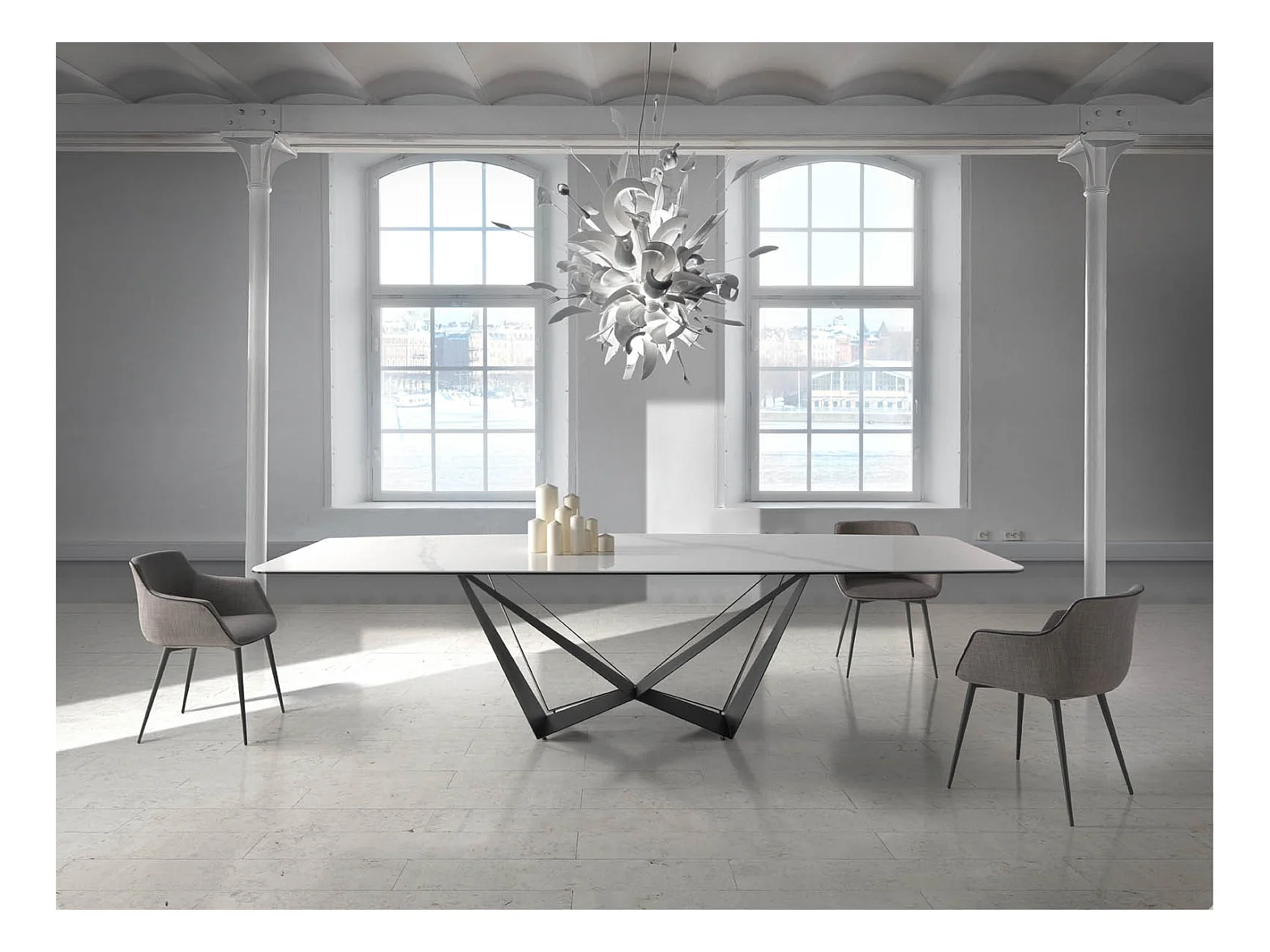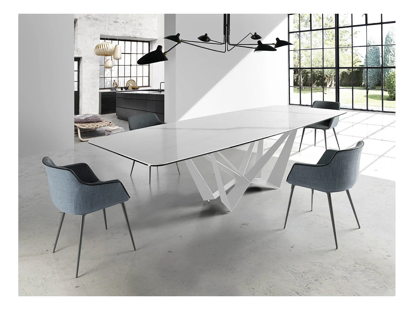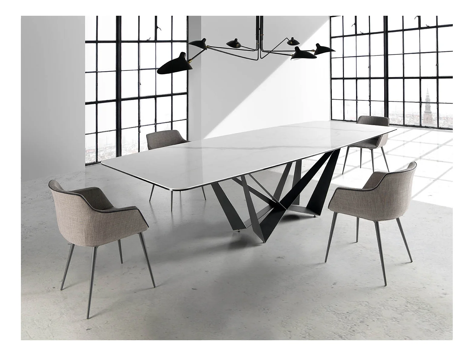 Eettafel voor 6 personen van keramiek en mdf - Wit marmereffect en zwart - LAOMINIA