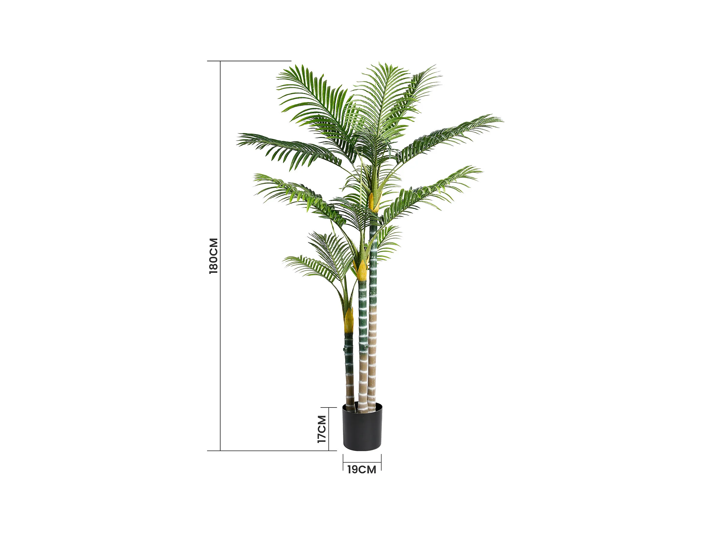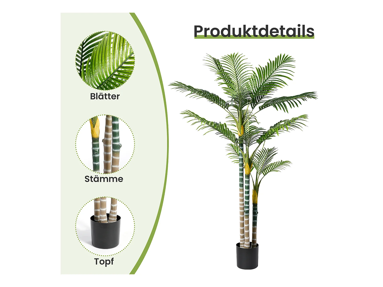 Kunstmatige buitenplant met pot, palmboom 180 cm, 3 stam en 18 bladeren, decoratie woonkamer slaapkamer balkon binnenplaats tuin kantoor