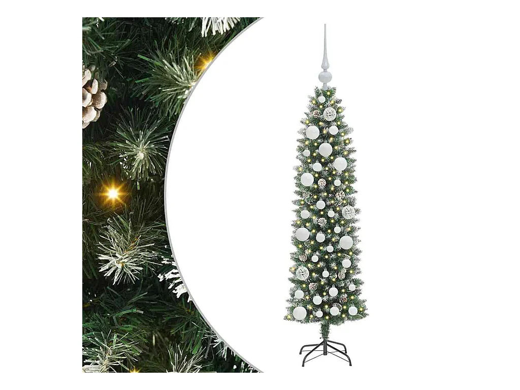 Kunstmatige slanke kerstboom met 150 LED Groen en wit 120 cm