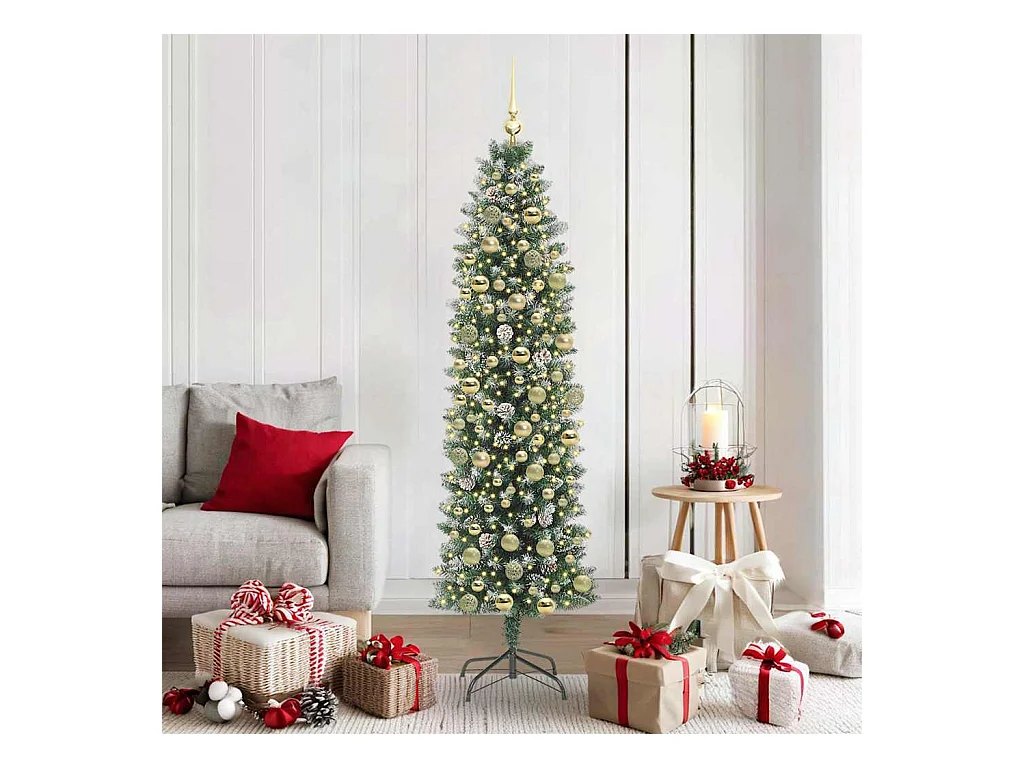Kunstmatige slanke kerstboom met 300 LED Groen en wit 180 cm