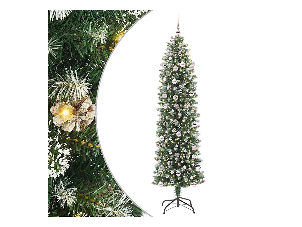 Kunstmatige slanke kerstboom met 300 LED Groen en wit 240 cm