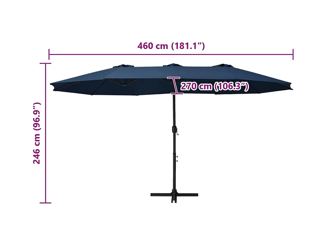 4,5 m rechthoekige dubbelzijdige parasol met slinger (donkerblauw) (zonder voet)