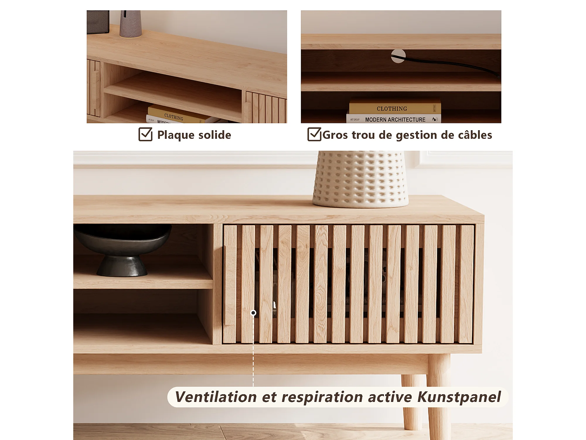 Laag houten tv-meubel met 2 deuren en 2 planken, met opbergruimte, voor woonkamer of slaapkamer, naturel