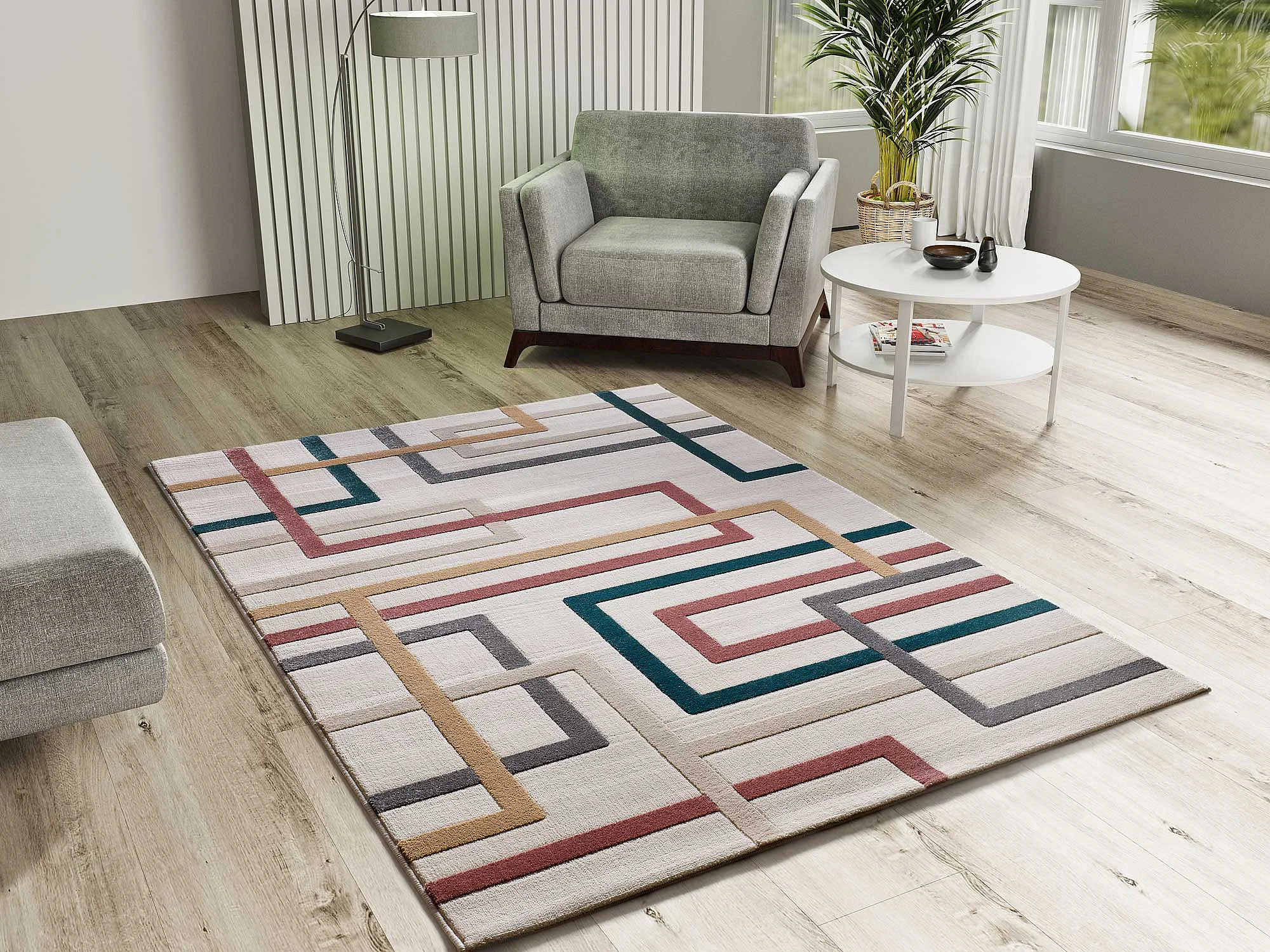 Laagpolig tapijt - geometrisch met reliëf - veelkleurig - 80x150 cm - KARISMA