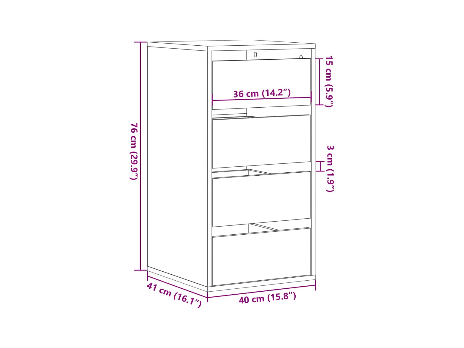 Ladekast 40x41x76 cm bewerkt hout grijs sonoma eikenkleurig