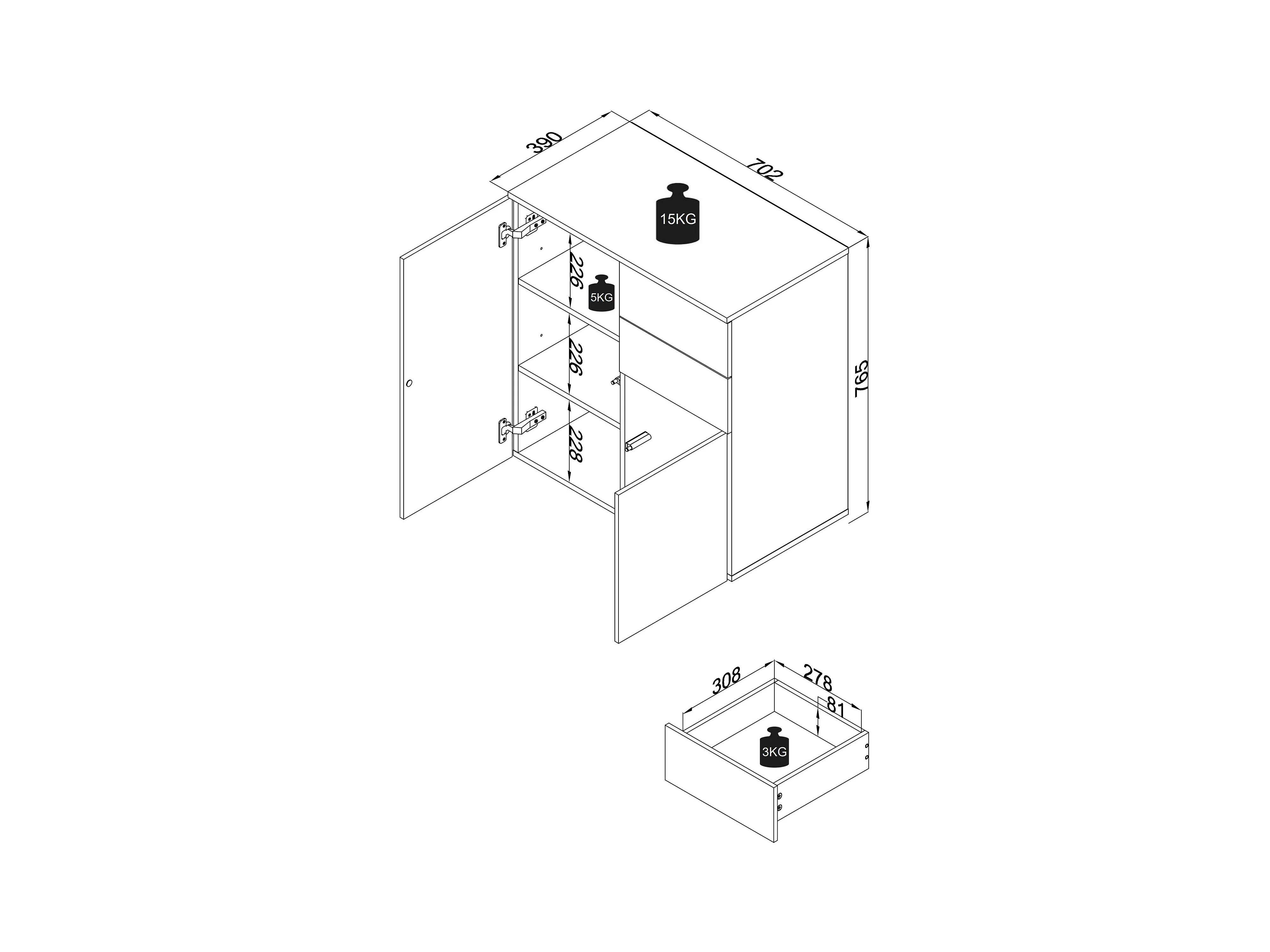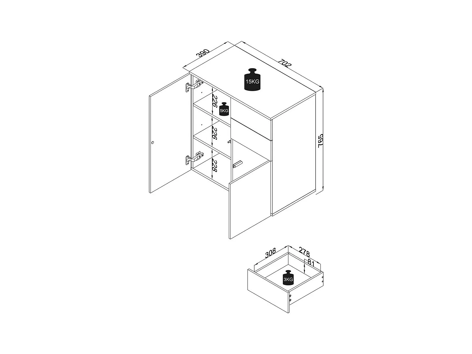 Dressoir 70x35,5x67,5 cm bewerkt hout wit
