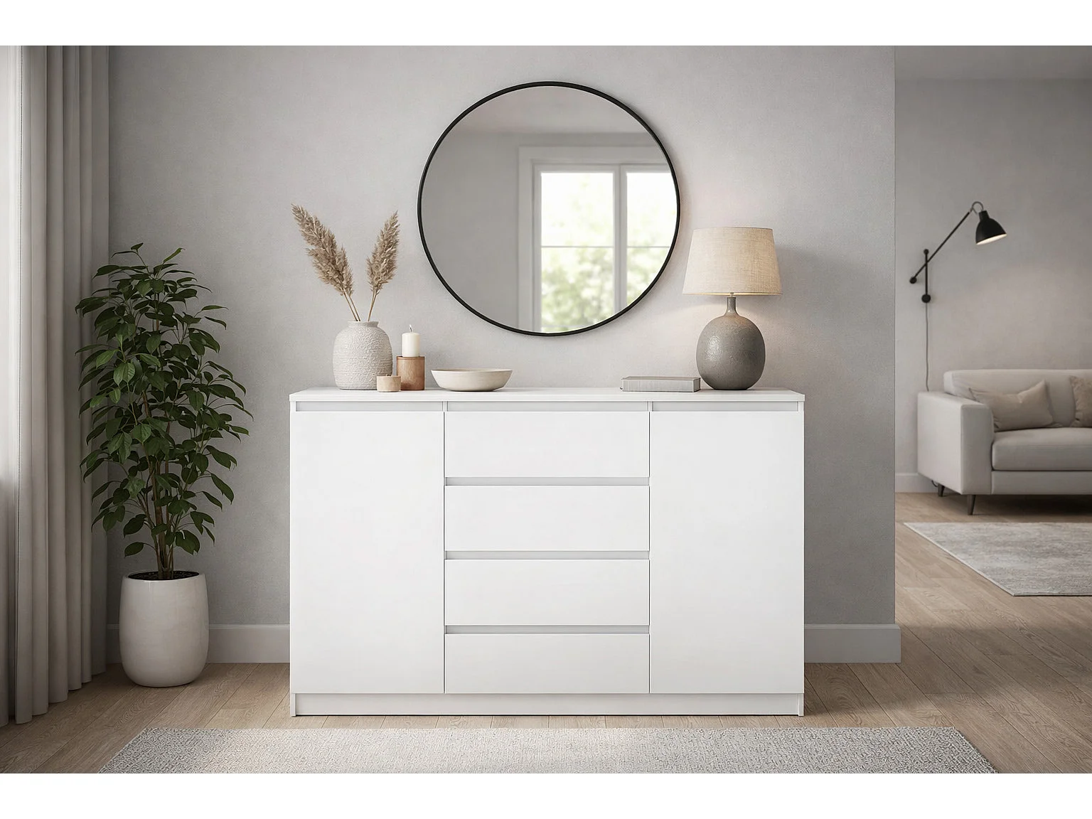 Ladekast Eenvoudig 140 cm in wit, 2 deuren, 4 lades,