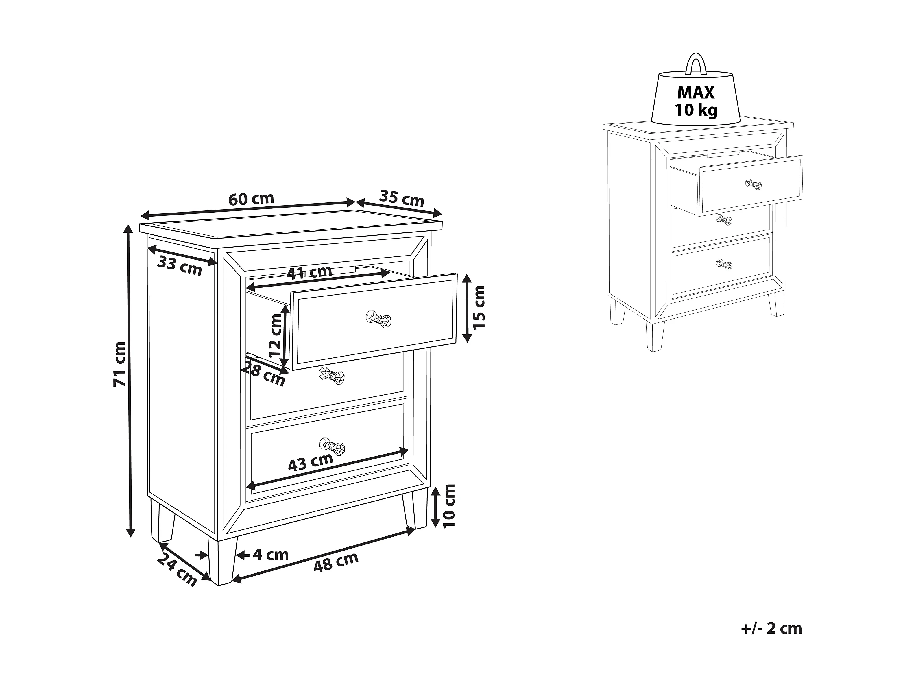 Ladekast 3 lades BREVES Spiegelend zilver