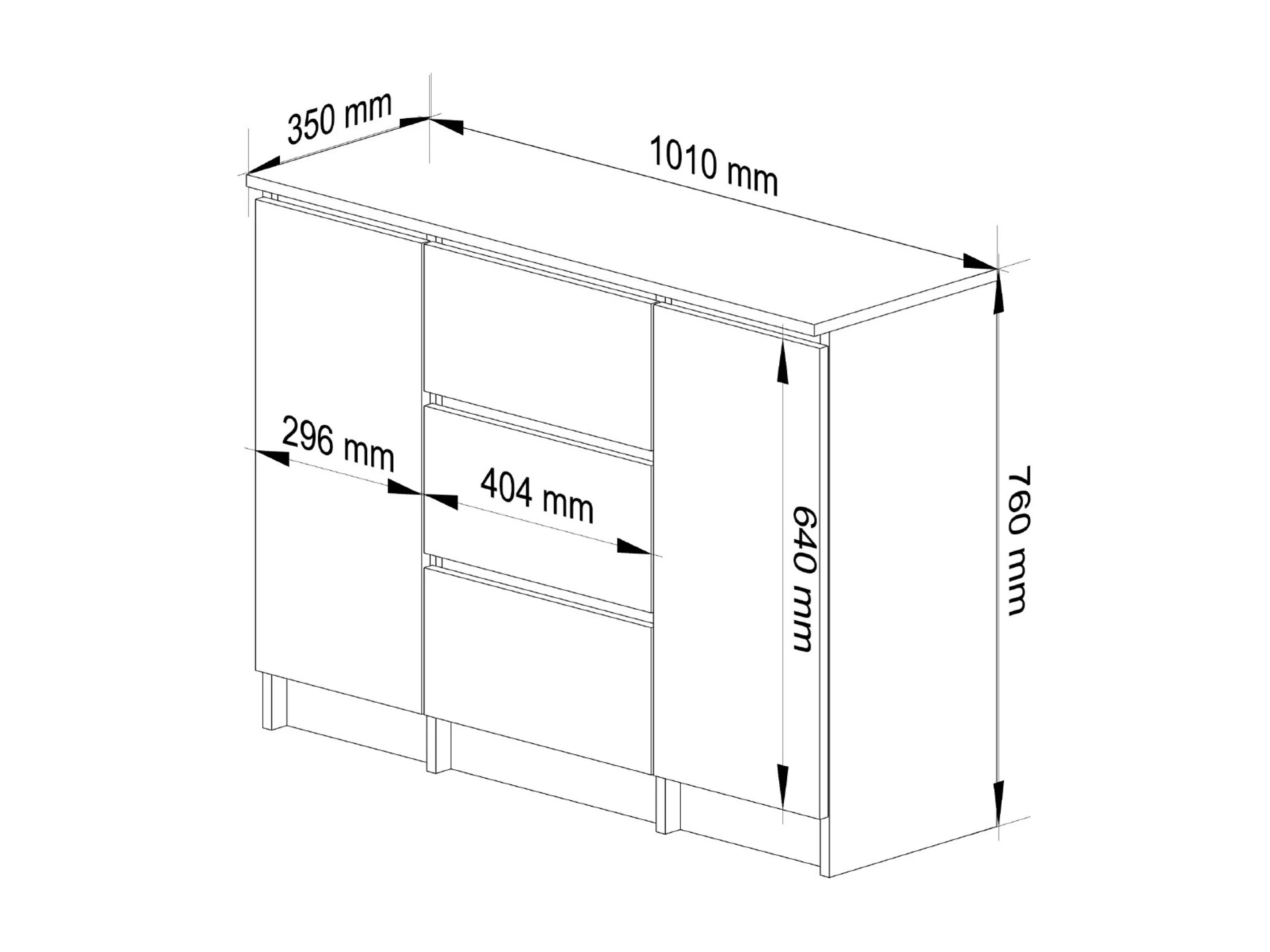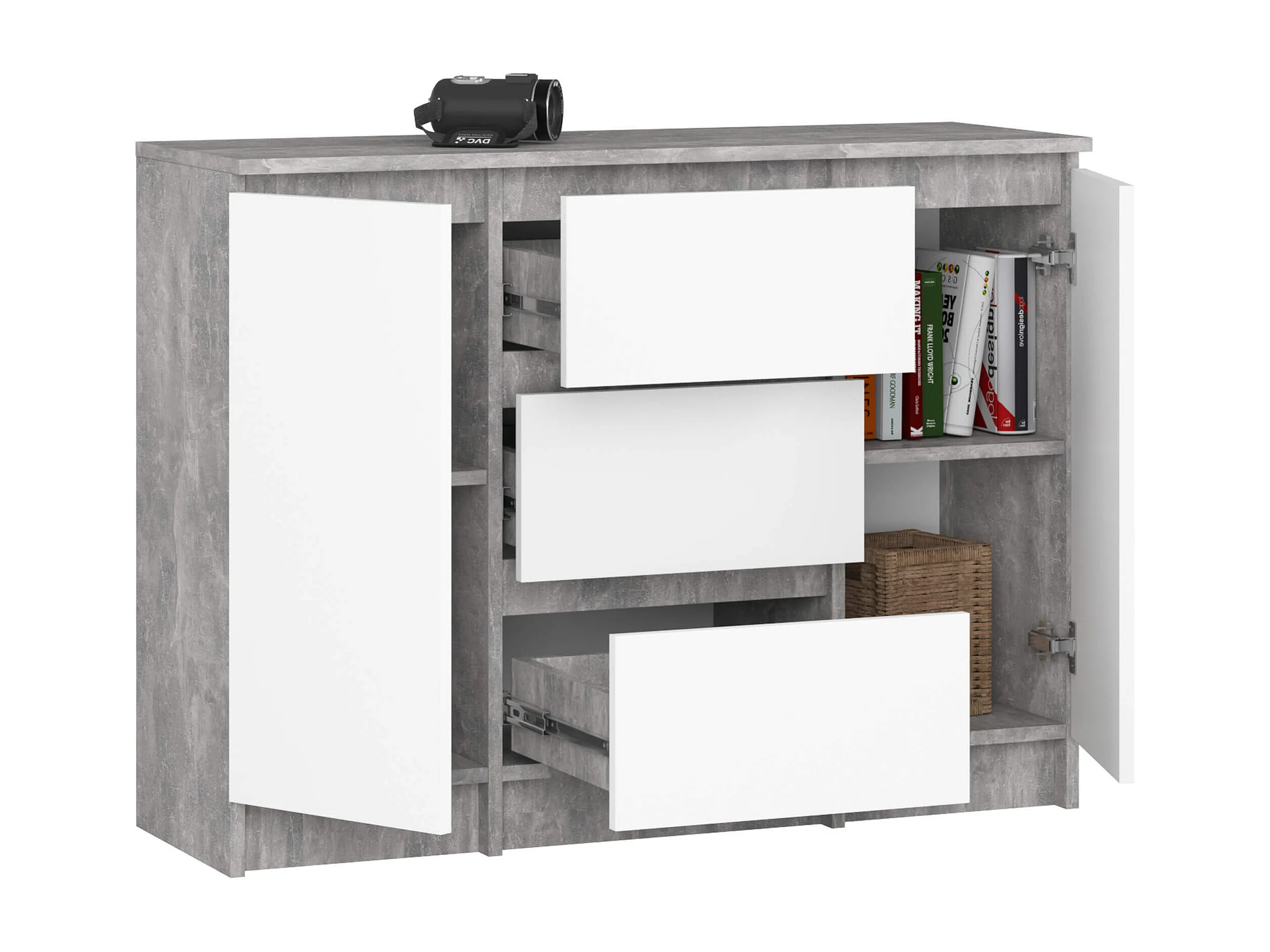 Ladekast K100 met 3 Lades en 2 Deuren / AKORD Furniture Factory / Beton Grijs - Wit / 101 x 76 x 35 cm