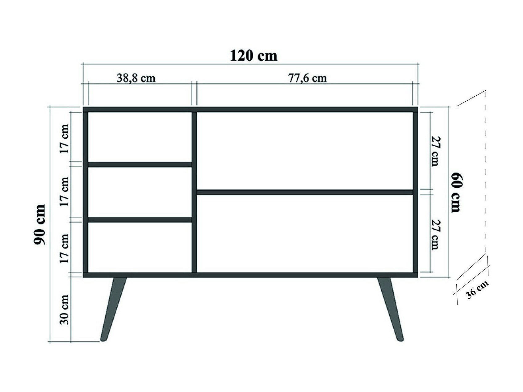 Modern dressoir – 160 cm x 78 cm x 35 cm – Walnoot – 100% melamine gecoat spaanplaat