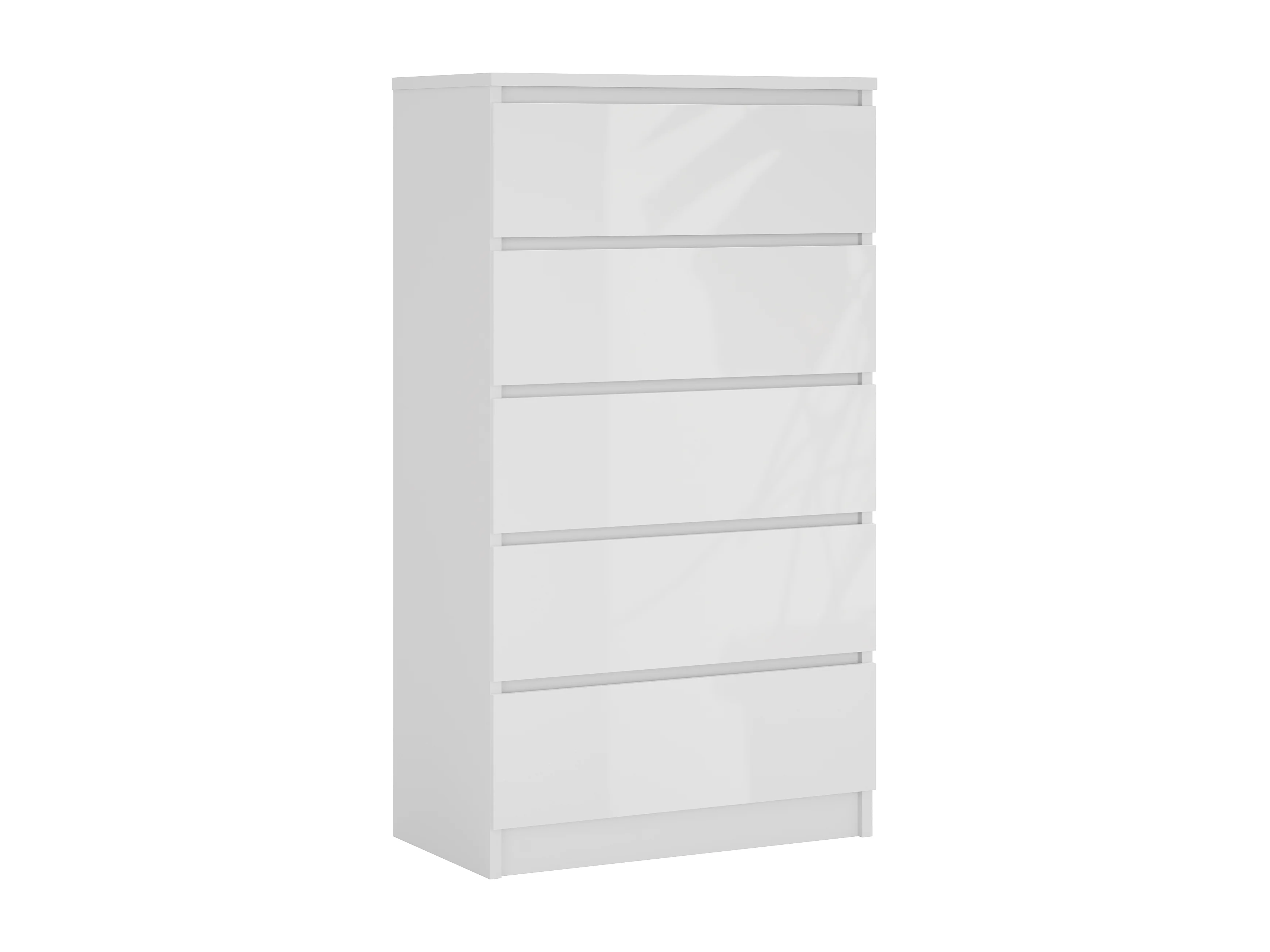 Ladekast met 5 lades: mat wit / glanzend wit, 70 x 39 x 125 cm