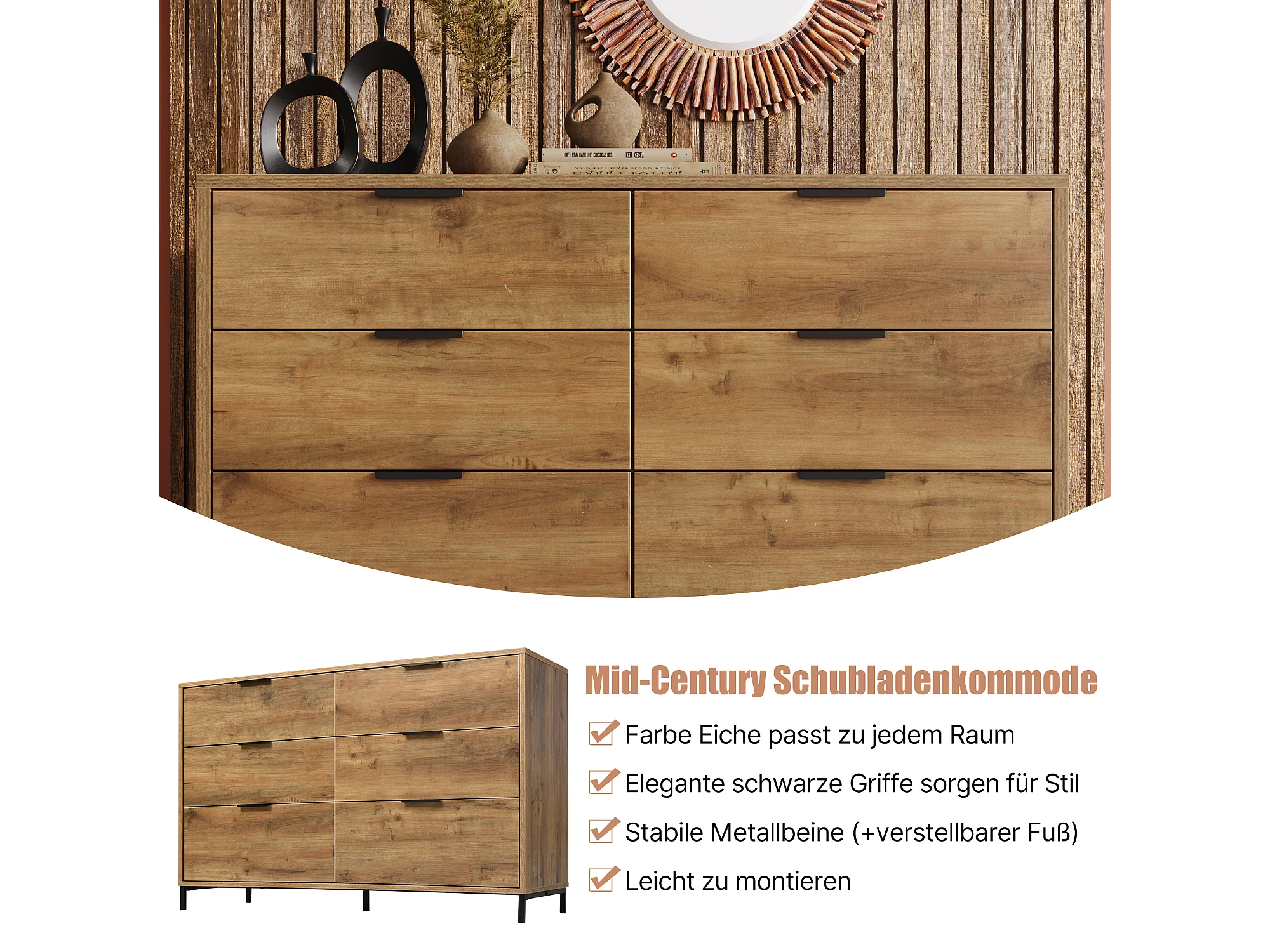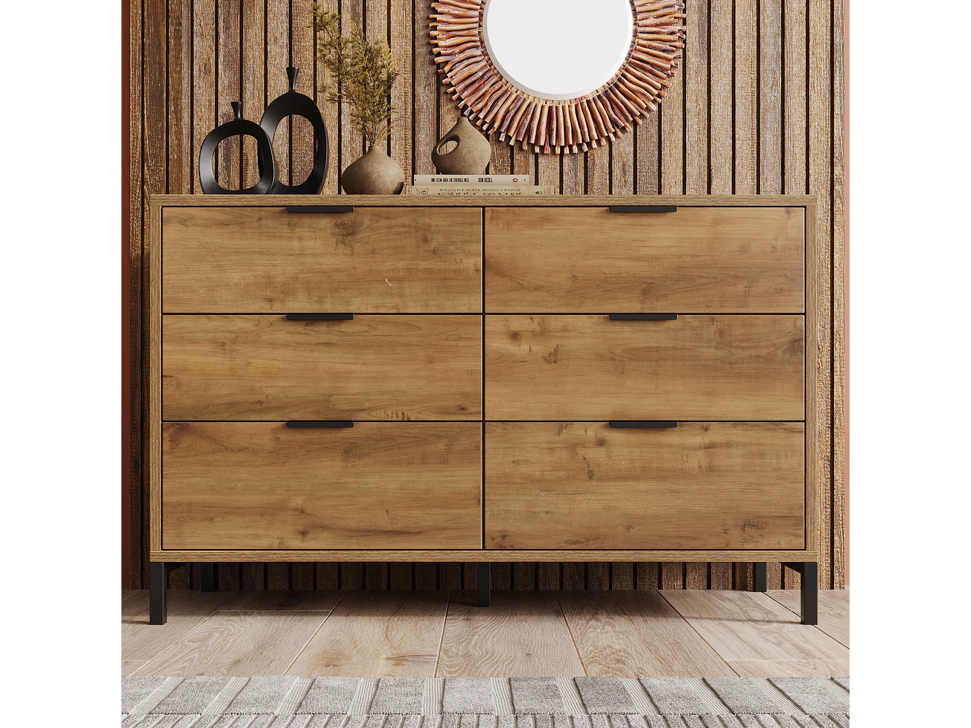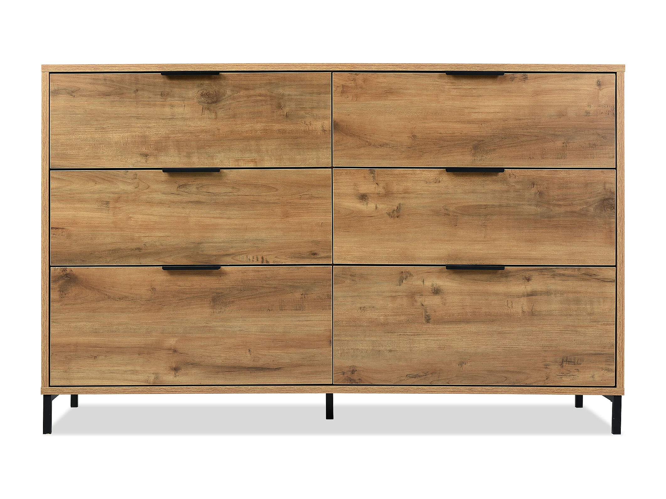 Ladekast met 6 laden, industrieel design, spaanplaat, donker eiken (120x40x76 cm)