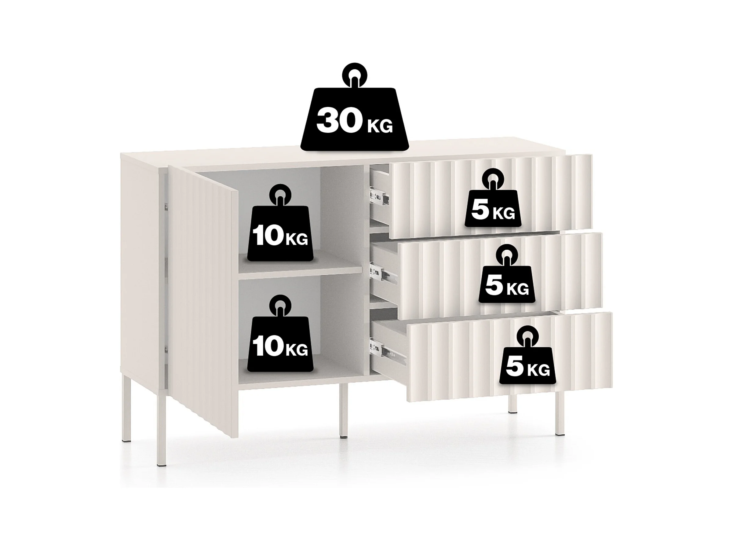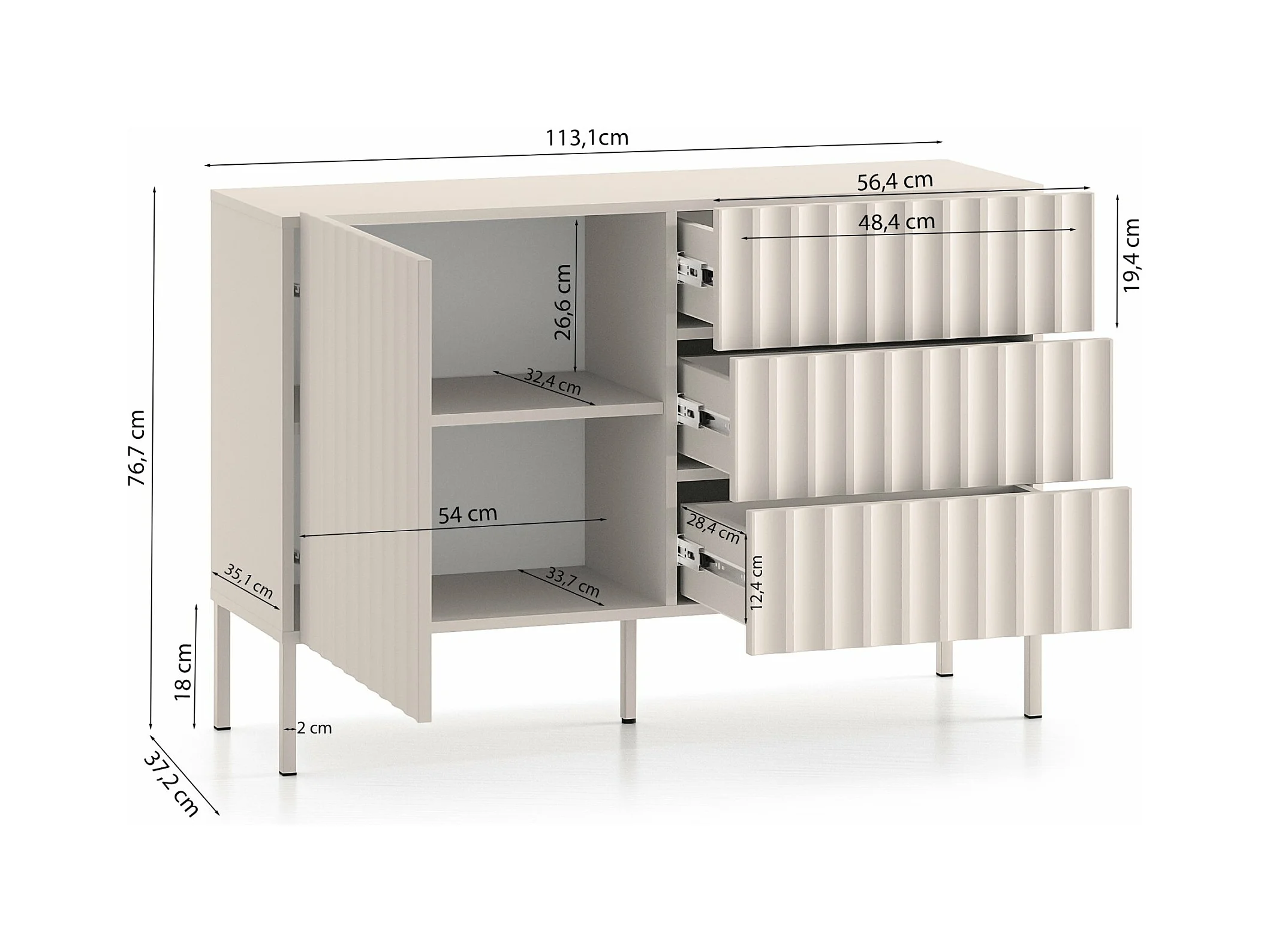 Ladekast met gecanneleerde fronten - 113 cm - lichtbeige - DERRIVA