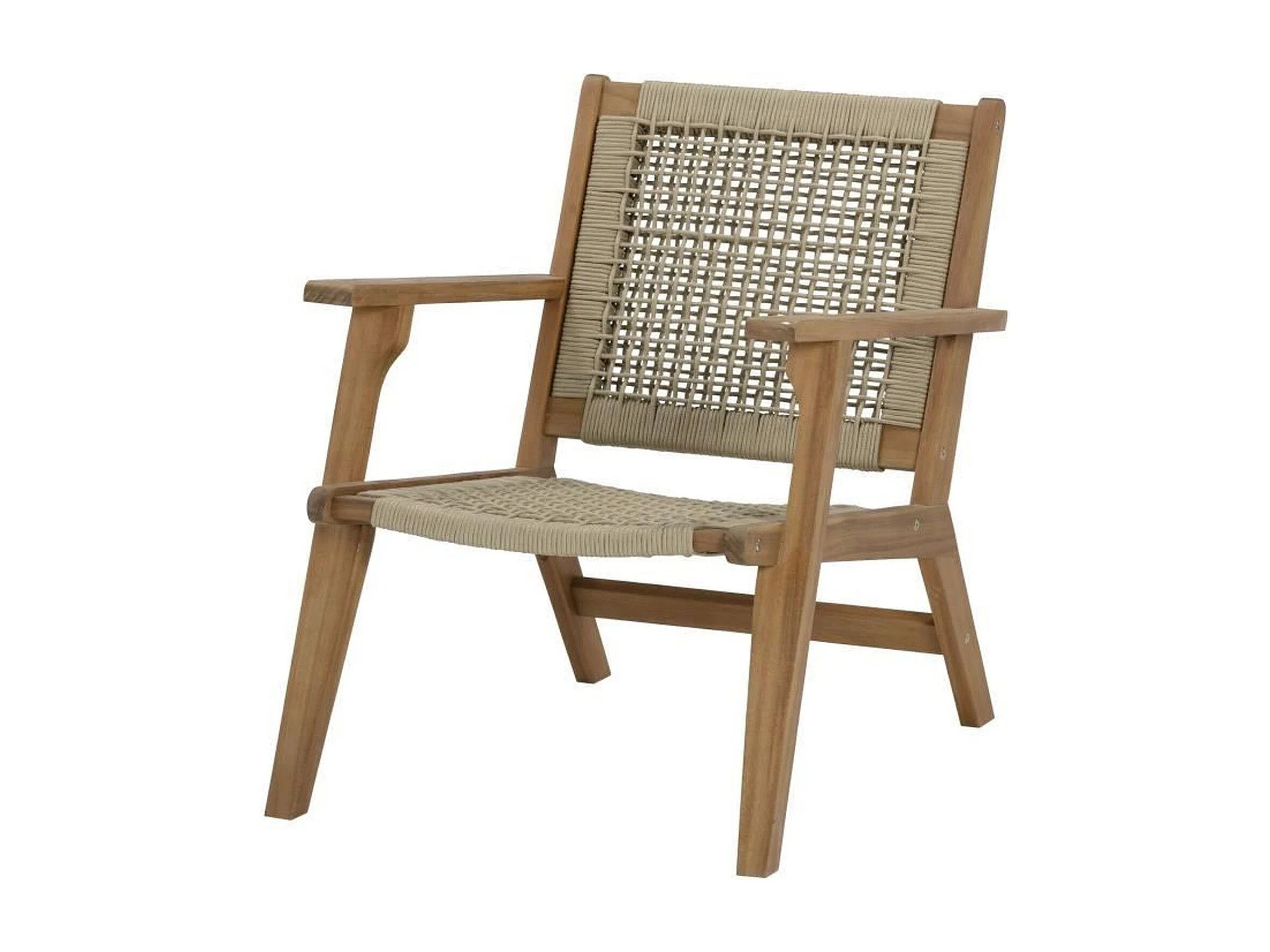 Lage 1-persoons fauteuil van FSC Acaciahout en olijfgroene gevlochten hars zonder armleuningen