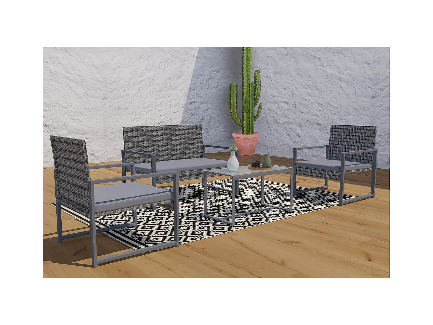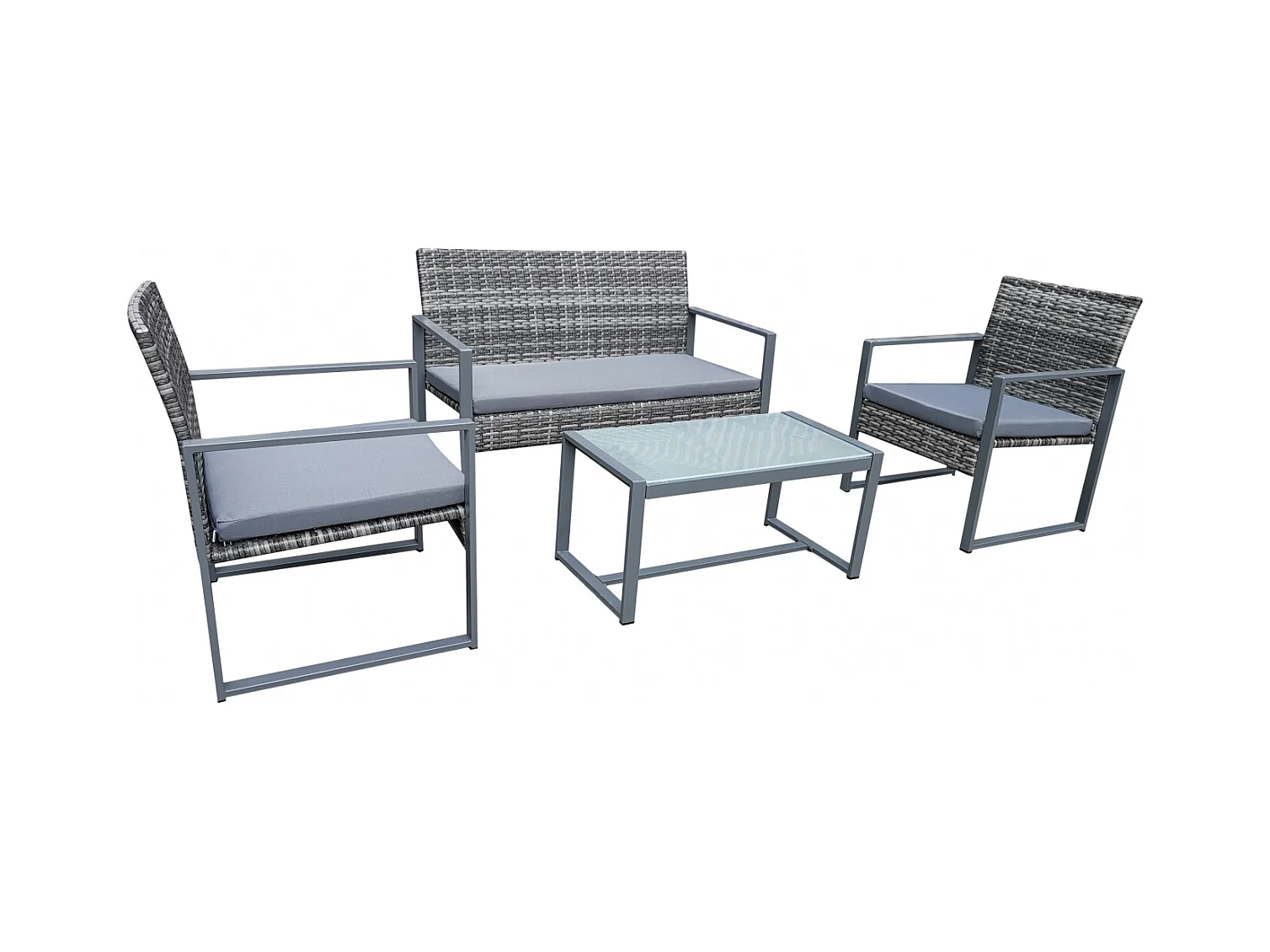 Tuinset van 4 zitplaatsen in grijs hars met lage tafel Nassau