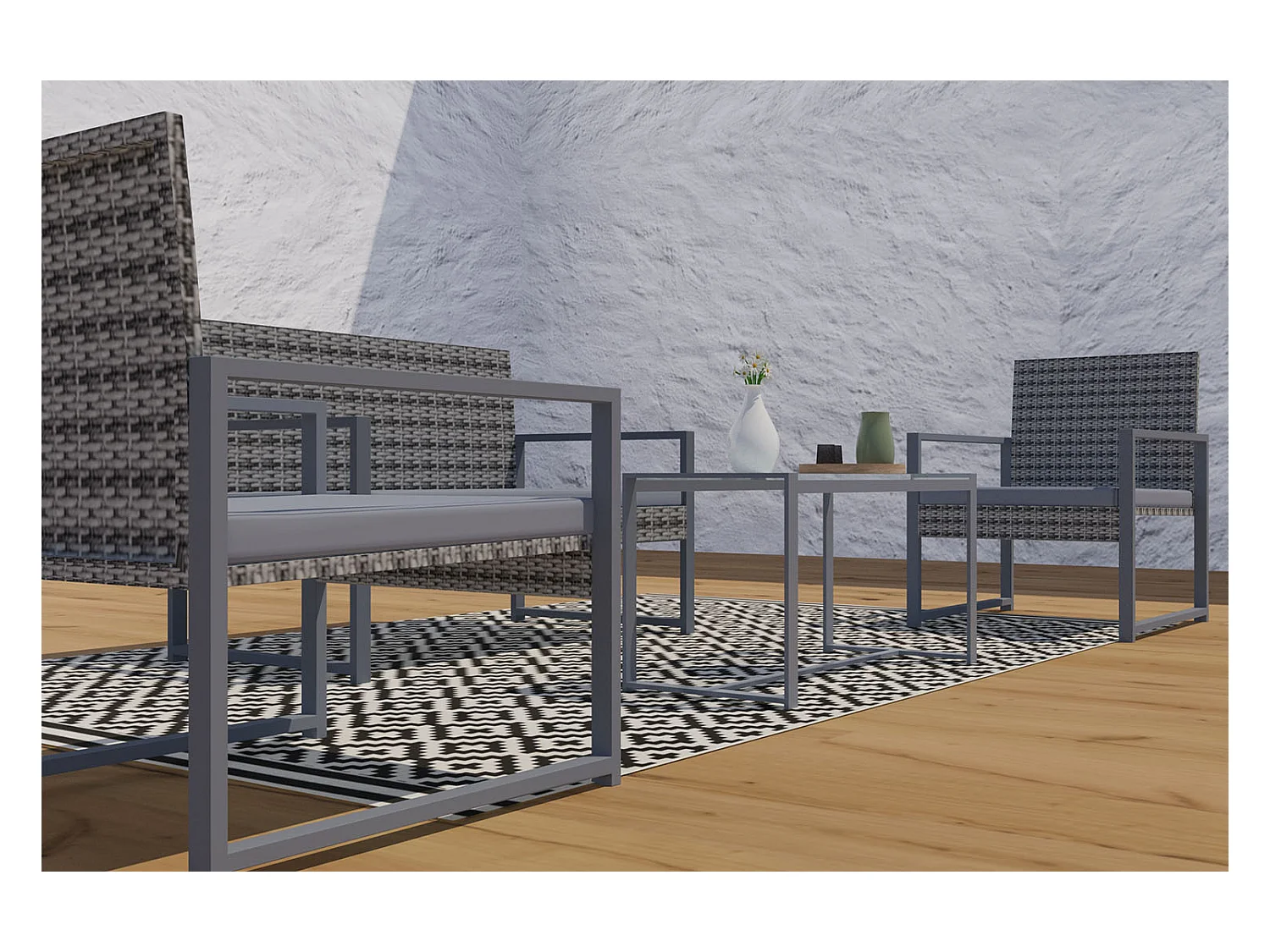 Loungeset 4 Plaatsen van Grijs/Zwart Vlechtwerk MOANA - Tafel, 2 Fauteuils, 2 Poefs - Moderne Buitenkant
