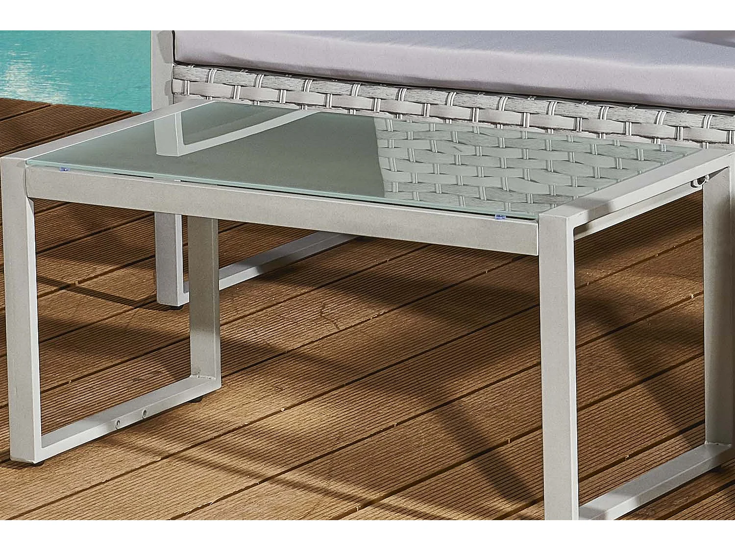 Lage Loungeset 4 Personen van Lichtgrijze Vlechtwerk Resin ESNA