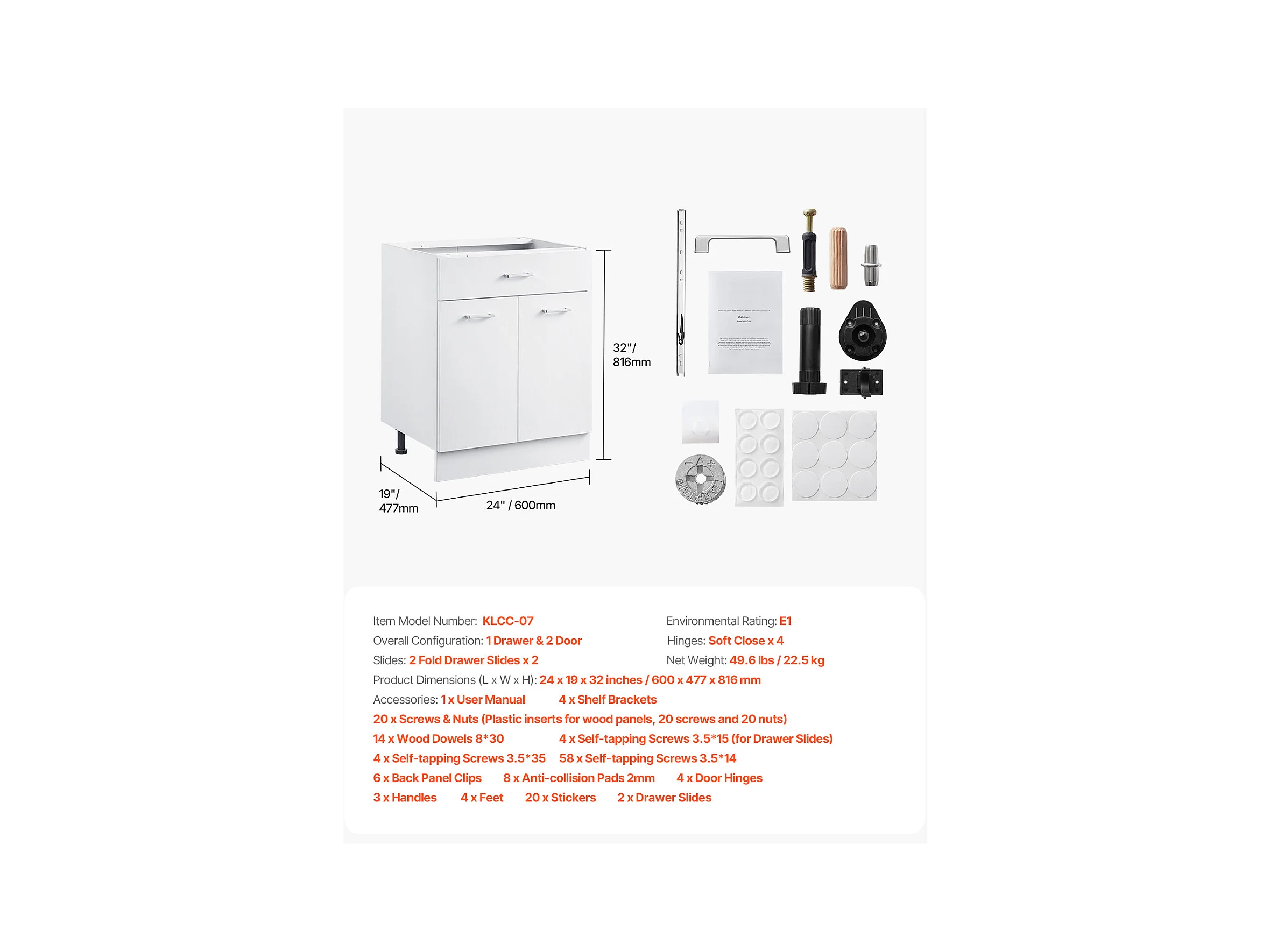 Lage Kast SucceBuy Shaker van 61cm met Lade Klaar om te Monteren, 1 Lade, met Sluitdeuren, Modern en Functioneel