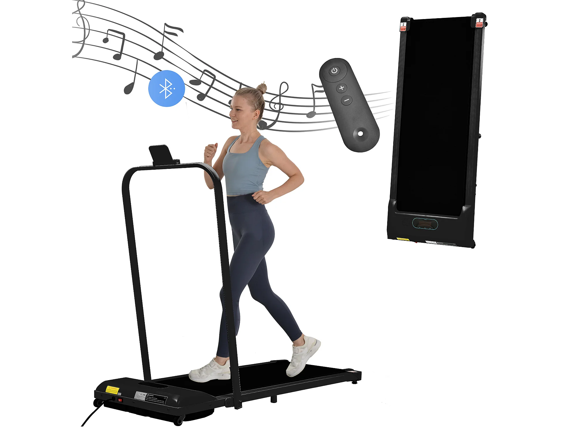 Laufband mit LED-Bildschirm, Bluetooth-Lautsprecher und Ständer – Schwarz