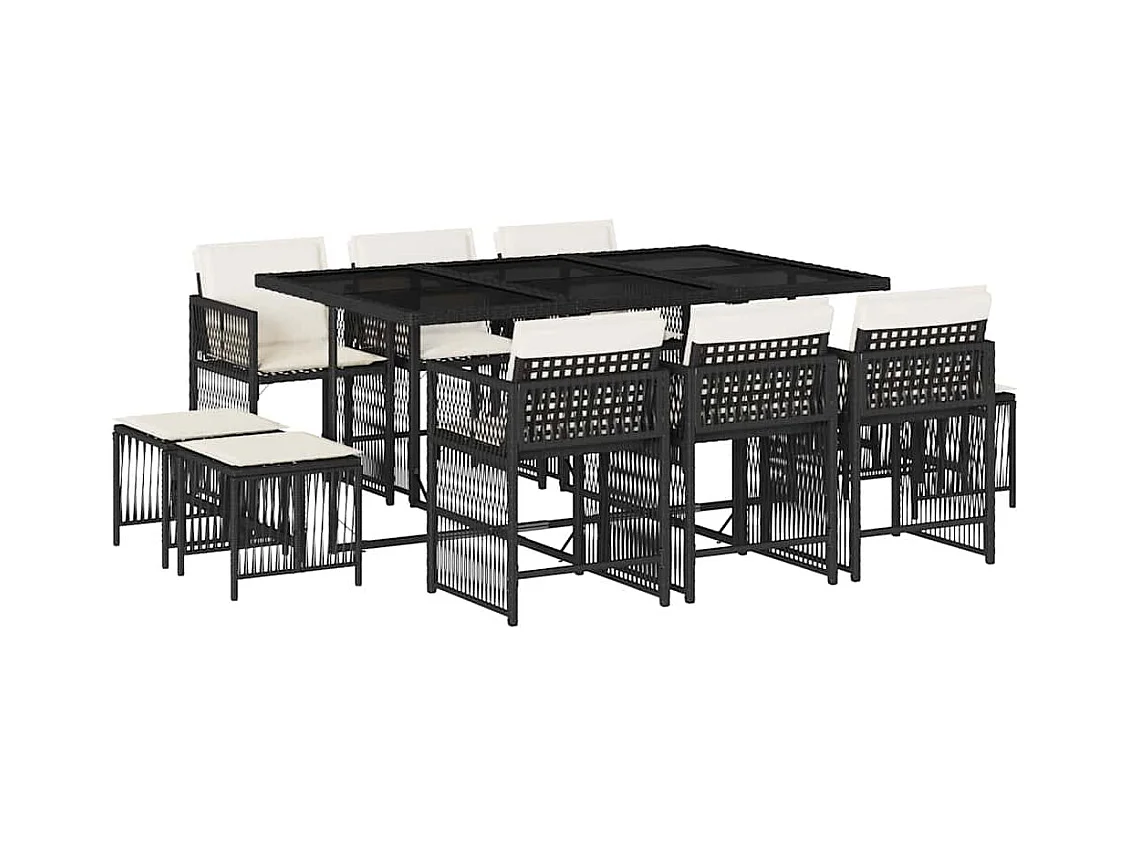 Xeli 11-delige Tuinset met kussens poly rattan zwart