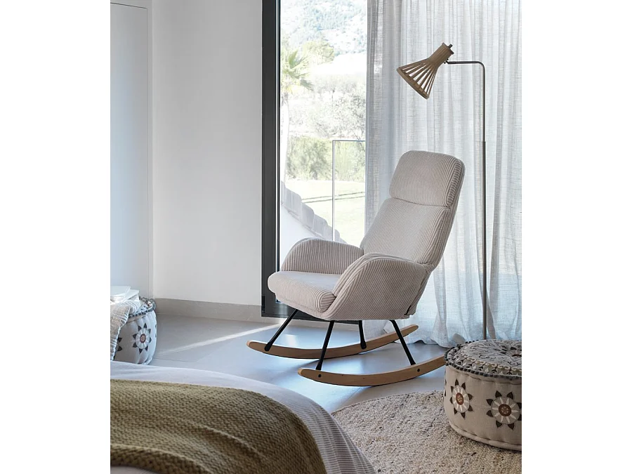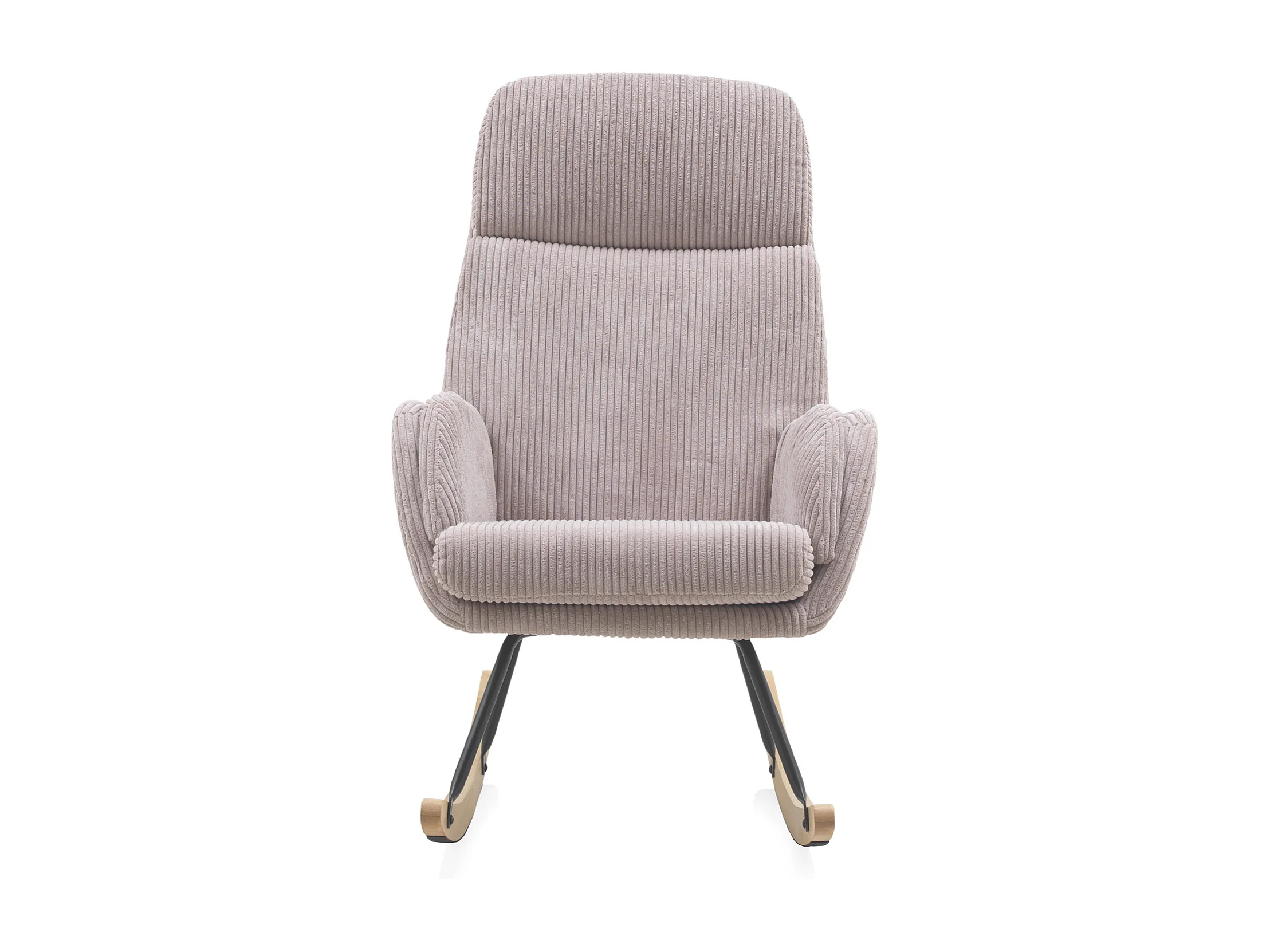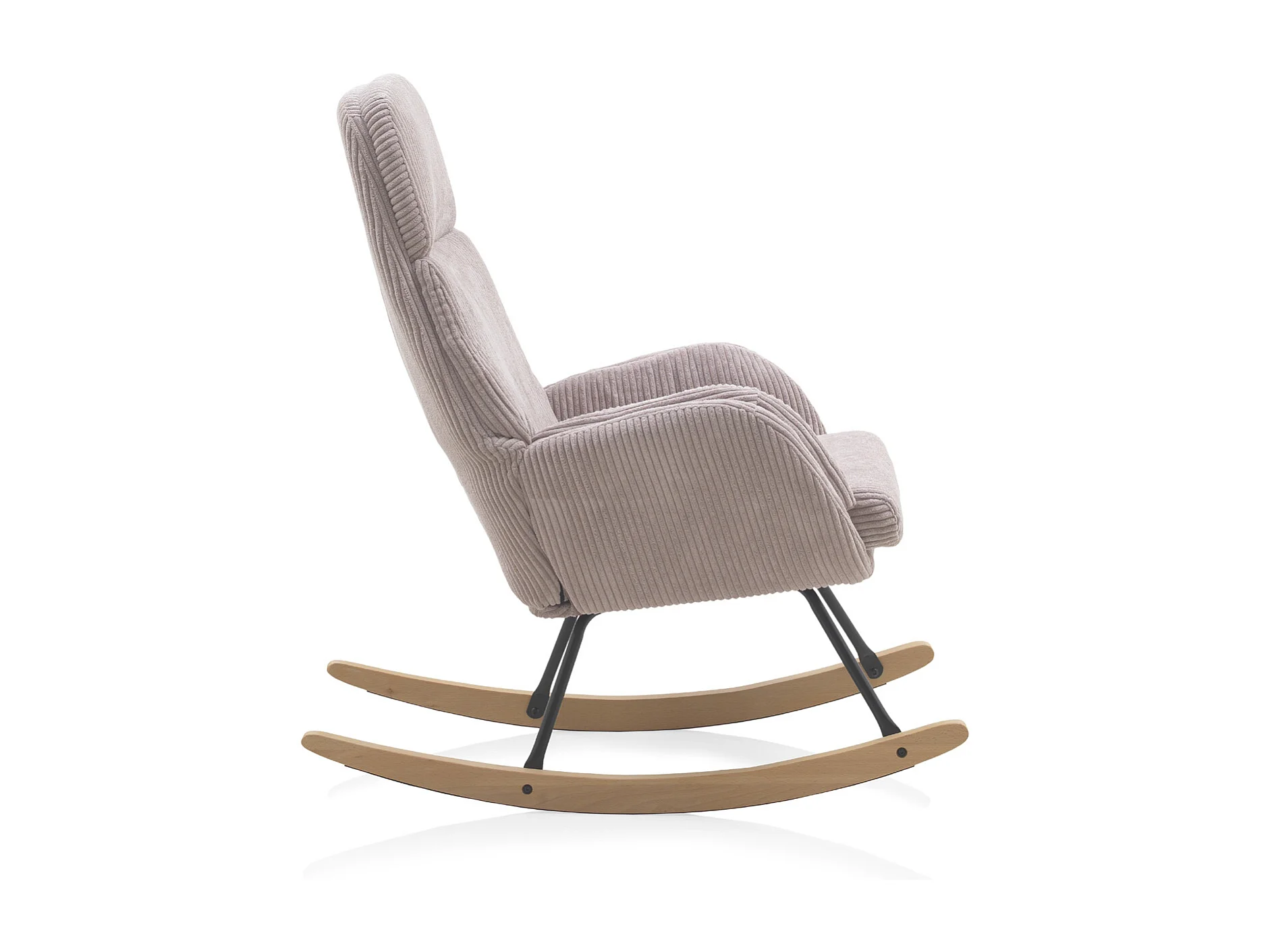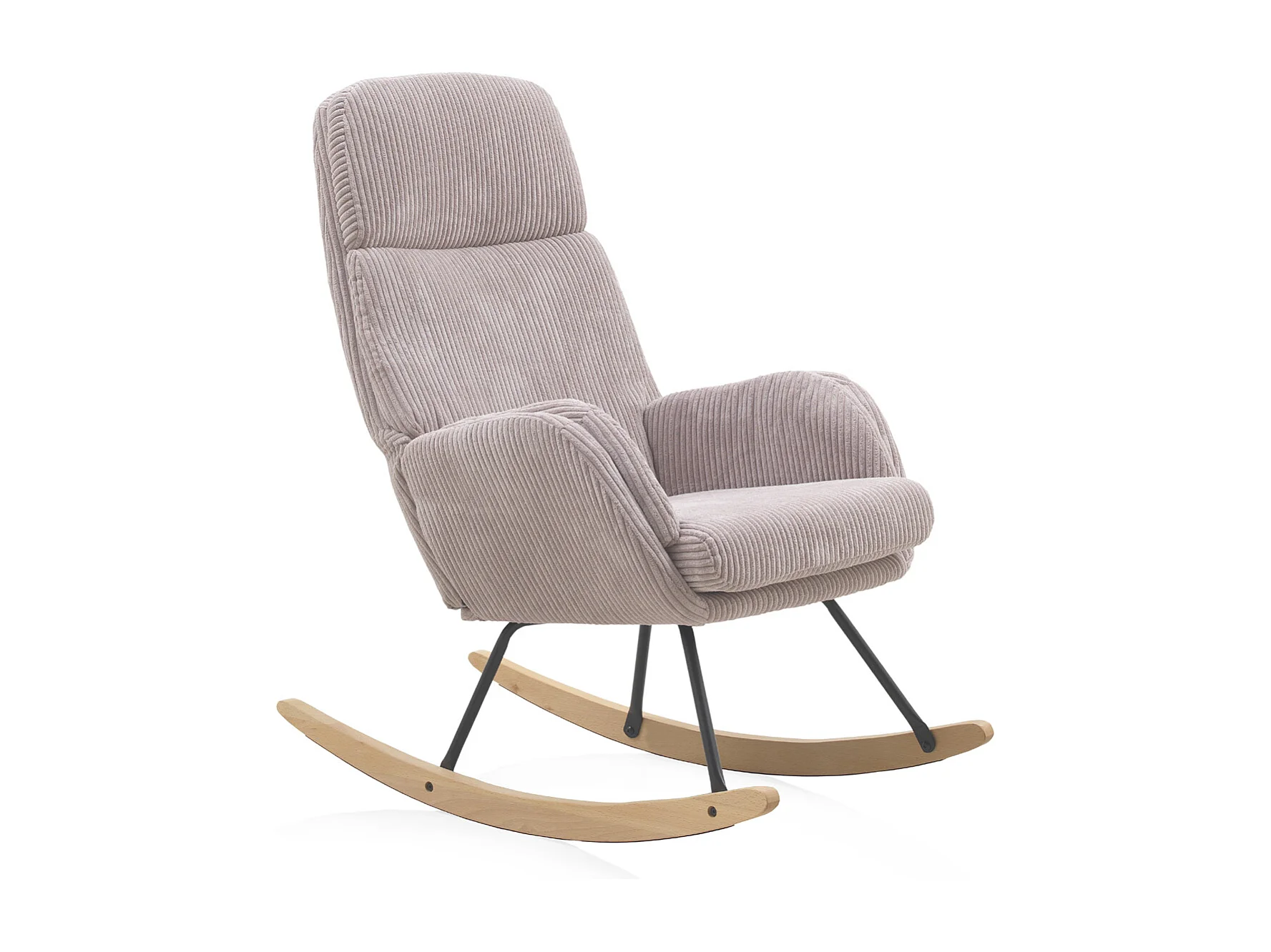 Lavendelroze schommelstoel, metalen poten en beukenhout