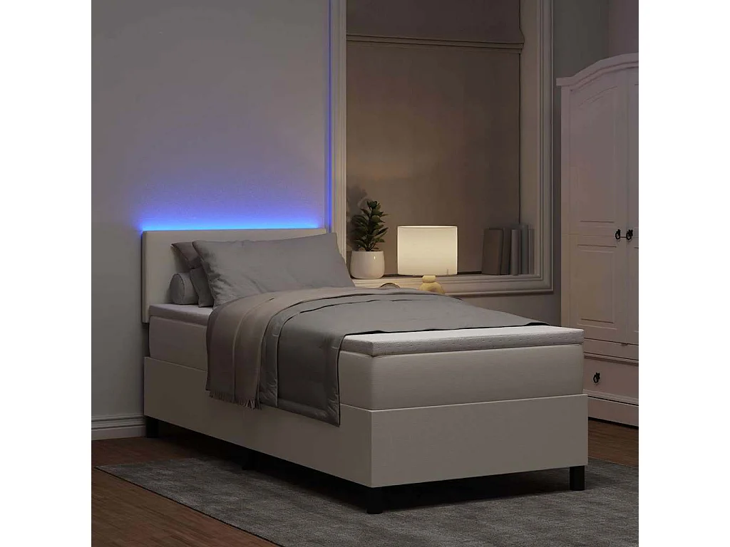 LED Box Spring Bed Crème en Wit 100 x 200 cm Katoen Stof