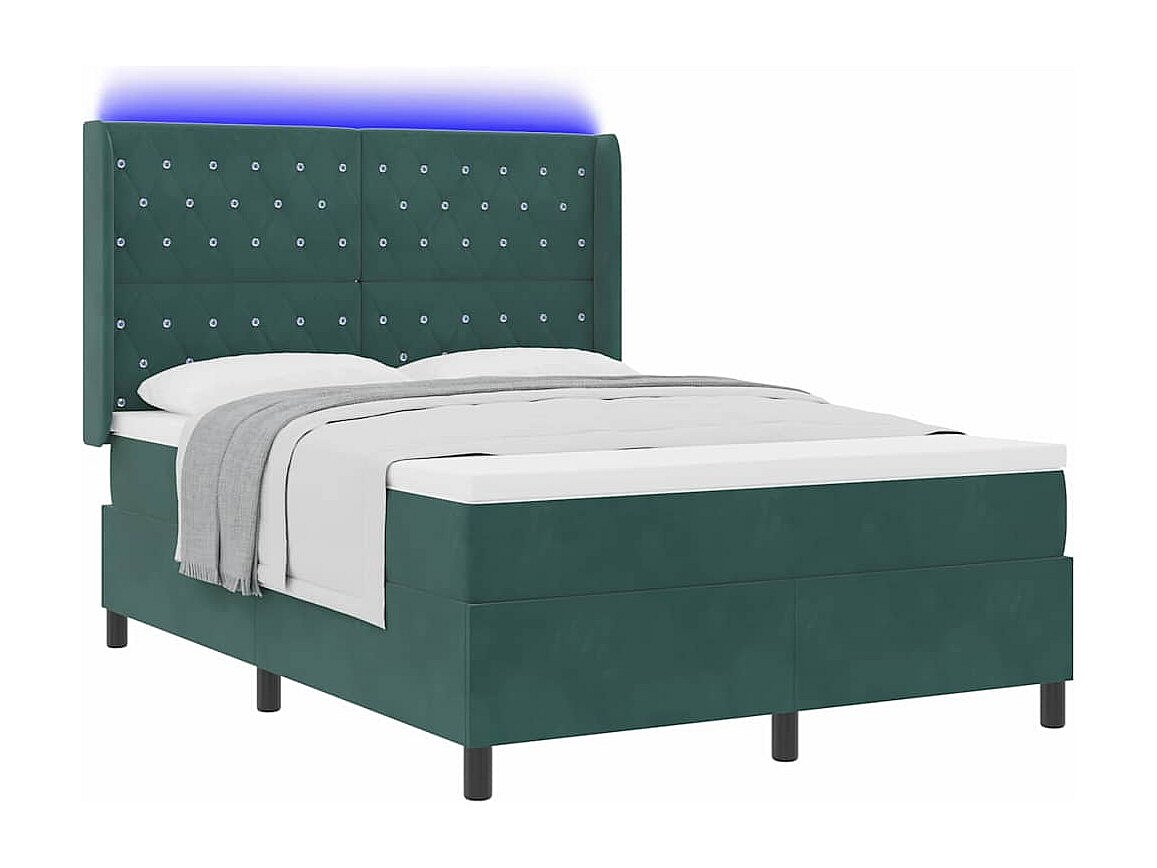 LED boxspring bed met matras Geruit Groen 140 x 190 cm Fluweel