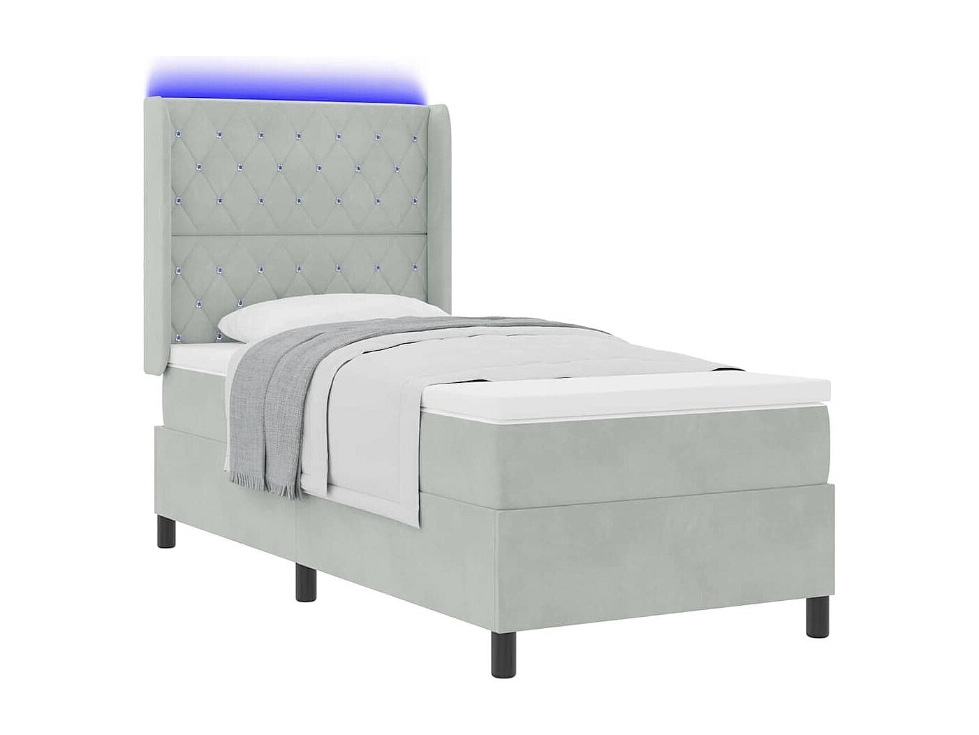LED boxspring bed met matras Lichtgrijs 100 x 200 cm Fluweel