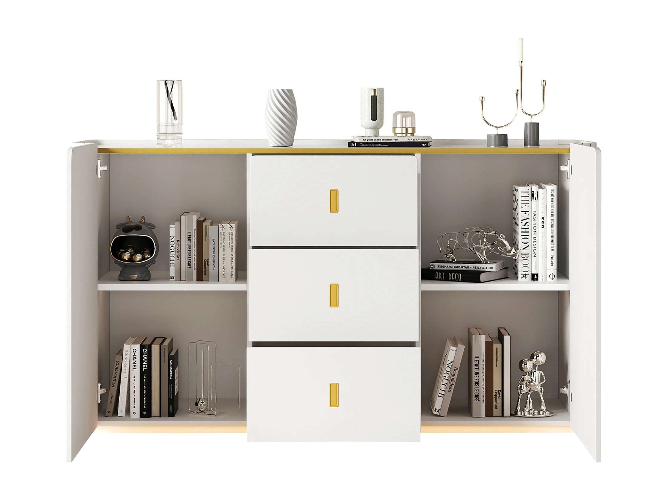 LED-dressoir met 2 deuren en 3 laden, MDF, wit, (150x35x80 cm)